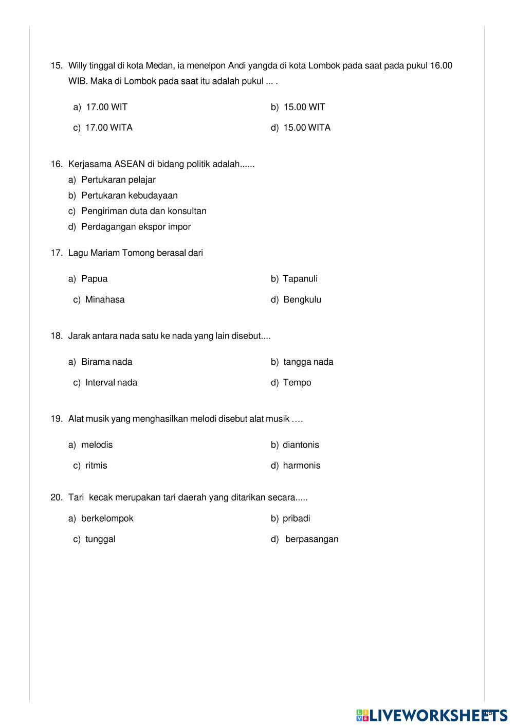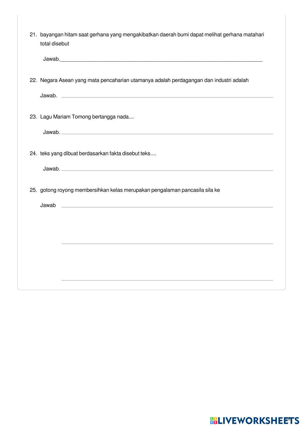 Created byNi Made Nitasari Tematik Tema 8 Age 11-15 level: 6 Indonesian Author's Instructions My Google Classroom Courses × 0 classes selected (0 students total) Quick Access Select all classes (0 classes) All Classes Loading courses... Cancel Share Share to selected Course __COURSE_NAME__ __STUDENT_NAME__ (__STUDENT_EMAIL__) ulangan harian tema 8 Download Worksheet Validation Check my answers Emails my answers to my teacher Full name Group/level School subject Teacher's email or key code Close Submit Validating worksheet... (12) Your answers have been sent to your teacher. Good luck! OK We encountered an error submitting your answers. Please try again. OK Advertisement | Go Ad Free Created byNi Made Nitasari Tematik Tema 8 Age 11-15 level: 6 Indonesian Author's Instructions