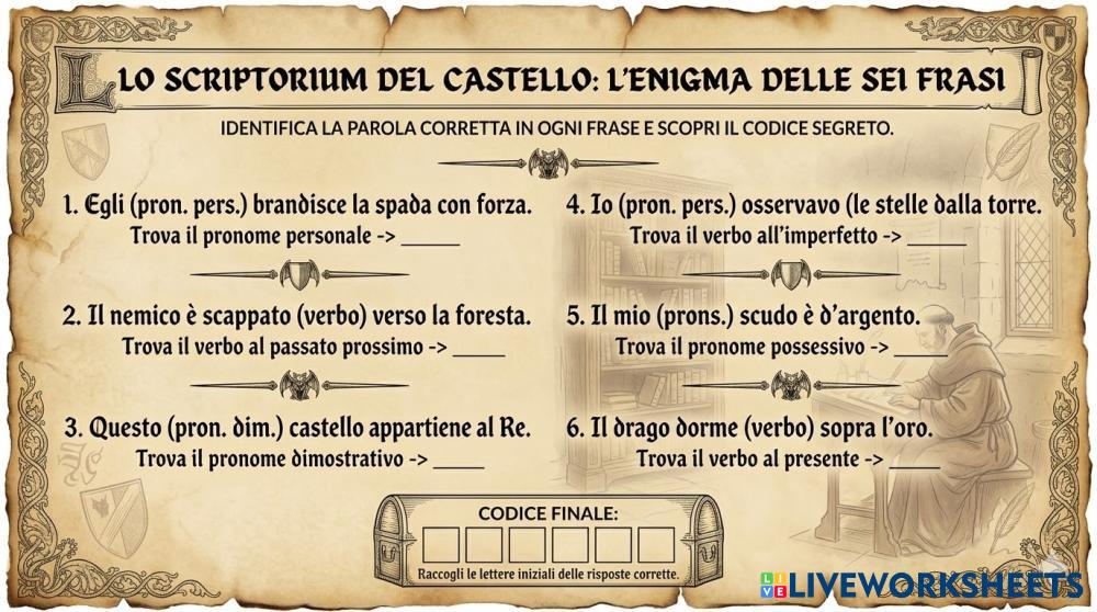 Created by maria171 Social Studies High School 9th grade History Italian Author's Instructions Individua verbi e pronomi nelle frasi My Google Classroom Courses × 0 classes selected (0 students total) Quick Access Select all classes (0 classes) All Classes Loading courses... Cancel Share Share to selected Course __COURSE_NAME__ __STUDENT_NAME__ (__STUDENT_EMAIL__) Pronomi Download Worksheet Validation Check my answers Emails my answers to my teacher Full name Group/level School subject Teacher's email or key code Close Submit Validating worksheet... (12) Your answers have been sent to your teacher. Good luck! OK We encountered an error submitting your answers. Please try again. OK Advertisement | Go Ad Free Created by maria171 Social Studies High School 9th grade History Italian Author's Instructions Individua verbi e pronomi nelle frasi Explore Worksheets from slavery to the White house - chronology Social Studies 9th grade from slavery to the White house - chronology History - Social Studies drag and drop Examen Estudios sociales v2 Social Studies 9th grade Examen Estudios sociales v2 History - Social Studies Lea las instrucciones EXAMEN ESTUDIOS SOCIALES 9NO Social Studies 9th grade EXAMEN ESTUDIOS SOCIALES 9NO History - Social Studies LEA LAS INSTRUCCIONES G9ADV Social Studies 9th grade G9ADV History - Social Studies AK