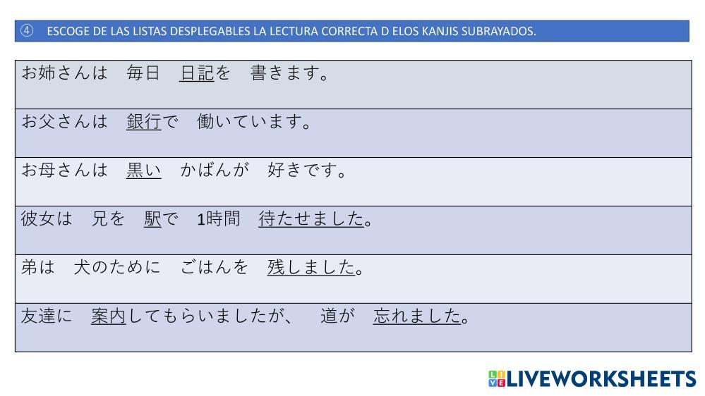 Created by conto2yu Gramatica genki Age 8+ level: intermedio Japanese Author's Instructions My Google Classroom Courses × 0 classes selected (0 students total) Quick Access Select all classes (0 classes) All Classes Loading courses... Cancel Share Share to selected Course __COURSE_NAME__ __STUDENT_NAME__ (__STUDENT_EMAIL__) Parcial INTERMEDIO 4 - tema 10 Download Worksheet Validation Check my answers Emails my answers to my teacher Full name Group/level School subject Teacher's email or key code Close Submit Validating worksheet... (12) Your answers have been sent to your teacher. Good luck! OK We encountered an error submitting your answers. Please try again. OK Advertisement | Go Ad Free Created by conto2yu Gramatica genki Age 8+ level: intermedio Japanese Author's Instructions