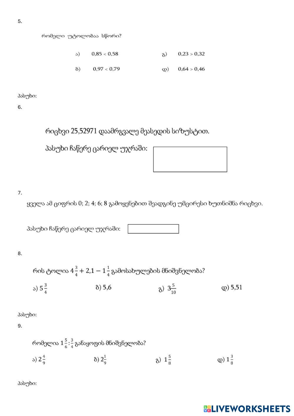 რიცხვები, ალგებრა,გეომეტრია,სიდიდეებს შორის დამოკიდებულება.