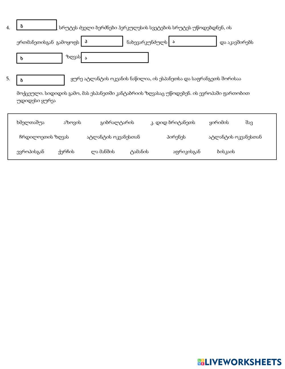 Created byketi kerashvili social geography Age 11-15 level: 8 Georgian Author's Instructions My Google Classroom Courses × 0 classes selected (0 students total) Quick Access Select all classes (0 classes) All Classes Loading courses... Cancel Share Share to selected Course __COURSE_NAME__ __STUDENT_NAME__ (__STUDENT_EMAIL__) ევროპის სრუტეები და ყურეები Download Worksheet Validation Check my answers Emails my answers to my teacher Full name Group/level School subject Teacher's email or key code Close Submit Validating worksheet... (12) Your answers have been sent to your teacher. Good luck! OK We encountered an error submitting your answers. Please try again. OK Advertisement | Go Ad Free Created byketi kerashvili social geography Age 11-15 level: 8 Georgian Author's Instructions