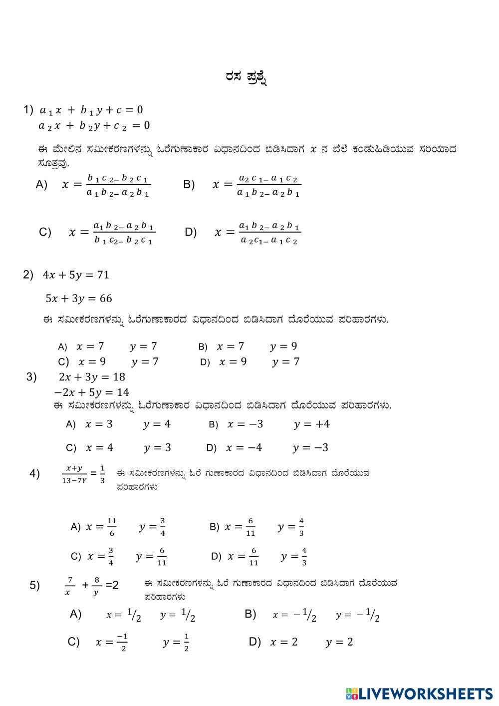 Pair of Linear equations in two variables - ಎರಡು ಚರಾಕ್ಷರಗಳುಳ್ಳ ರೇಖಾತ್ಮಕ ಸಮೀಕರಣಗಳ