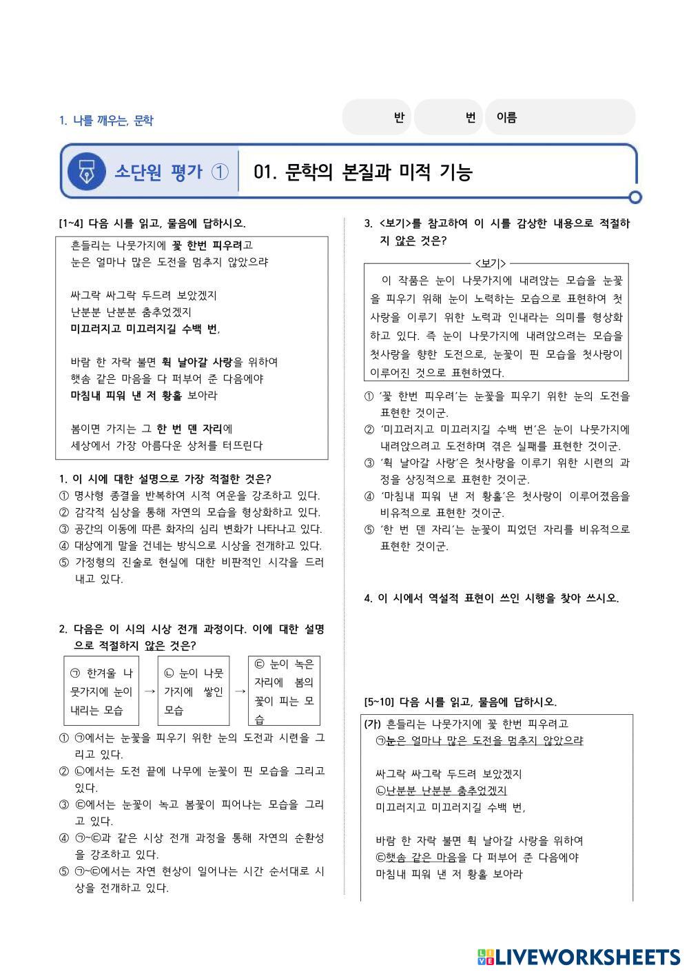 소단원평가 (문학 2학년)