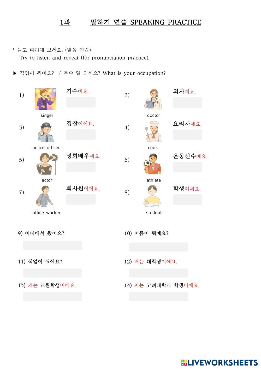 Created by soheejin English Language High School 12th grade Vocabulary Korean Author's Instructions * 듣고 따라해 보세요. (발음 연습) Try to listen and repeat (for pronunciation practice). My Google Classroom Courses × 0 classes selected (0 students total) Quick Access Select all classes (0 classes) All Classes Loading courses... Cancel Share Share to selected Course __COURSE_NAME__ __STUDENT_NAME__ (__STUDENT_EMAIL__) 1과 말하기 연습 Download Worksheet Validation Check my answers Emails my answers to my teacher Full name Group/level School subject Teacher's email or key code Close Submit Validating worksheet... (12) Your answers have been sent to your teacher. Good luck! OK We encountered an error submitting your answers. Please try again. OK Advertisement | Go Ad Free Created by soheejin English Language High School 12th grade Vocabulary Korean Author's Instructions * 듣고 따라해 보세요. (발음 연습) Try to listen and repeat (for pronunciation practice). Explore Worksheets hydraulic tools English Language 12th grade hydraulic tools Vocabulary - English Language Encontrar las palabras Road Map Unit test 9 B1 English Language 12th grade Road Map Unit test 9 B1 Vocabulary - English Language Unit test NAVIGATE B1 WB UNIT 1 English Language 12th grade NAVIGATE B1 WB UNIT 1 Vocabulary - English Language COMPLETE EXTRA ACTIVITIES FROM UNIT 1 đề 15vip English Language 12th grade đề 15vip Vocabulary - English Language ưewf