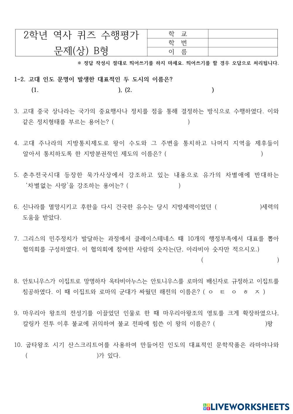 Created by황상훈 history History Age 14+ level: 1 Korean Author's Instructions My Google Classroom Courses × 0 classes selected (0 students total) Quick Access Select all classes (0 classes) All Classes Loading courses... Cancel Share Share to selected Course __COURSE_NAME__ __STUDENT_NAME__ (__STUDENT_EMAIL__) 2-2-B(상) Download Worksheet Validation Check my answers Emails my answers to my teacher Full name Group/level School subject Teacher's email or key code Close Submit Validating worksheet... (12) Your answers have been sent to your teacher. Good luck! OK We encountered an error submitting your answers. Please try again. OK Advertisement | Go Ad Free Created by황상훈 history History Age 14+ level: 1 Korean Author's Instructions