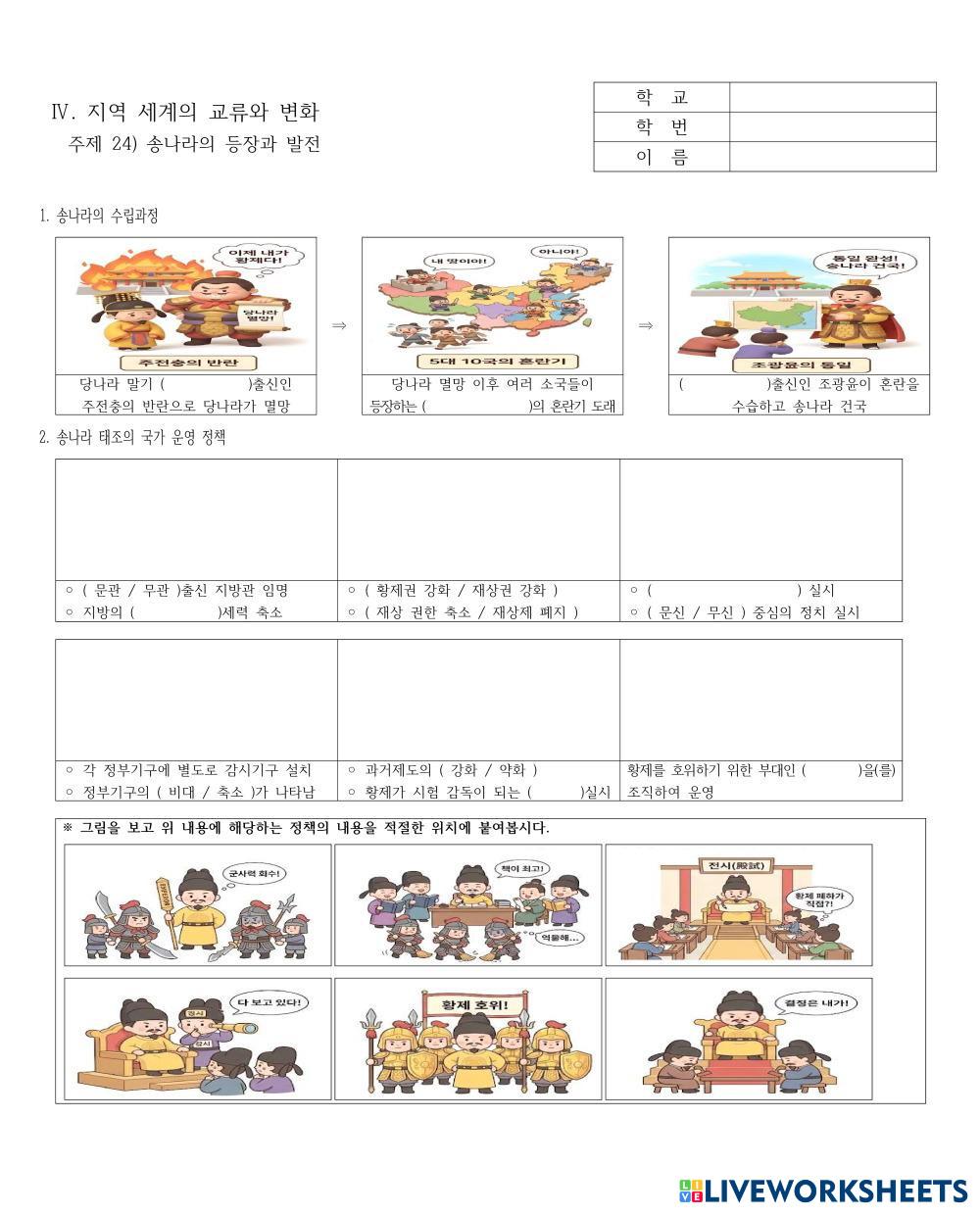Created by황상훈 Social Studies Middle School 6th grade History Korean Author's Instructions 중2-24) 송의 등장과 발전 My Google Classroom Courses × 0 classes selected (0 students total) Quick Access Select all classes (0 classes) All Classes Loading courses... Cancel Share Share to selected Course __COURSE_NAME__ __STUDENT_NAME__ (__STUDENT_EMAIL__) 중2-24) 송의 등장과 발전 Download Worksheet Validation Check my answers Emails my answers to my teacher Full name Group/level School subject Teacher's email or key code Close Submit Validating worksheet... (12) Your answers have been sent to your teacher. Good luck! OK We encountered an error submitting your answers. Please try again. OK Advertisement | Go Ad Free Created by황상훈 Social Studies Middle School 6th grade History Korean Author's Instructions 중2-24) 송의 등장과 발전 Explore Worksheets AS.SKI6 Genap26 Social Studies 6th grade AS.SKI6 Genap26 History - Social Studies Menjawab soal pilihan ganda dan menjawab pertanyaan singkat dengan mengisi titik-titik CCSS TEMA 4 Social Studies 6th grade CCSS TEMA 4 History - Social Studies Prueba escrita tema 4 독립운동사 문제 Social Studies 6th grade 독립운동사 문제 History - Social Studies 독립운동사 문제 Fiqih 2 2026 Social Studies 6th grade Fiqih 2 2026 History - Social Studies menejawab pertanyaan