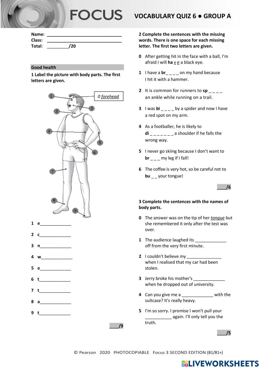 Created by vilsal English as a Second Language (ESL) Body Age 14+ level: B1+ Lithuanian Author's Instructions My Google Classroom Courses × 0 classes selected (0 students total) Quick Access Select all classes (0 classes) All Classes Loading courses... Cancel Share Share to selected Course __COURSE_NAME__ __STUDENT_NAME__ (__STUDENT_EMAIL__) Vocabulary Focus3 Unit6 Download Worksheet Validation Check my answers Emails my answers to my teacher Full name Group/level School subject Teacher's email or key code Close Submit Validating worksheet... (12) Your answers have been sent to your teacher. Good luck! OK We encountered an error submitting your answers. Please try again. OK Advertisement | Go Ad Free Created by vilsal English as a Second Language (ESL) Body Age 14+ level: B1+ Lithuanian Author's Instructions