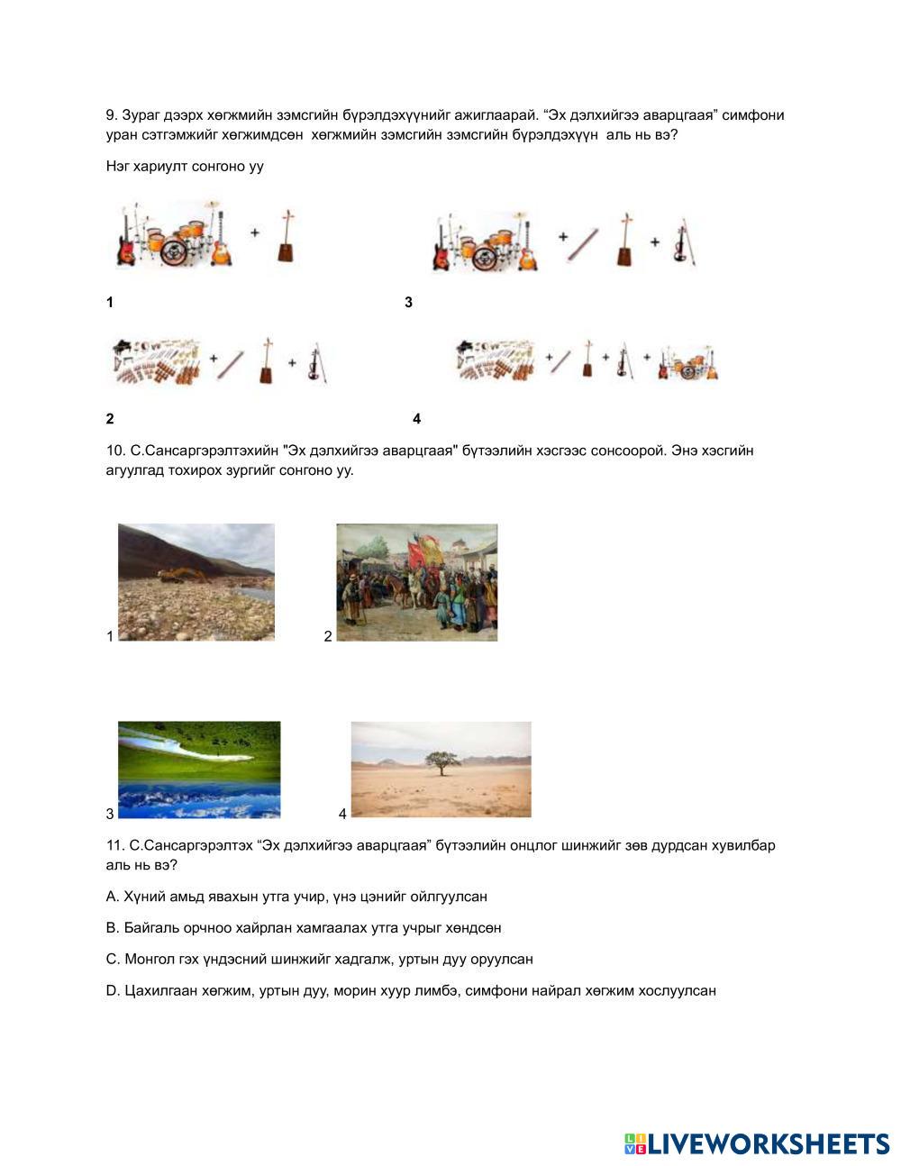 Created by zolzayakh English Language High School 9th grade Writing Mongolian Author's Instructions 9-р анги 2-р улирал My Google Classroom Courses × 0 classes selected (0 students total) Quick Access Select all classes (0 classes) All Classes Loading courses... Cancel Share Share to selected Course __COURSE_NAME__ __STUDENT_NAME__ (__STUDENT_EMAIL__) Монголын орчин үеийн хөгжмийн Download Worksheet Validation Check my answers Emails my answers to my teacher Full name Group/level School subject Teacher's email or key code Close Submit Validating worksheet... (12) Your answers have been sent to your teacher. Good luck! OK We encountered an error submitting your answers. Please try again. OK Advertisement | Go Ad Free Created by zolzayakh English Language High School 9th grade Writing Mongolian Author's Instructions 9-р анги 2-р улирал Explore Worksheets Worksheet 9 - Grade 9 English Language 9th grade Worksheet 9 - Grade 9 Writing - English Language Bác Huyền Worksheet 8 - Grade 9 English Language 9th grade Worksheet 8 - Grade 9 Writing - English Language Bác Huyền Analiza el esquema de rima English Language 9th grade Analiza el esquema de rima Writing - English Language Revisa los versos que riman entre sí y establece el esquema de rima de estas estrofas. Analiza el tipo de rima English Language 9th grade Analiza el tipo de rima Writing - English Language Revisa la teoría e indica si la rima de estos versos es consonante o asonante.