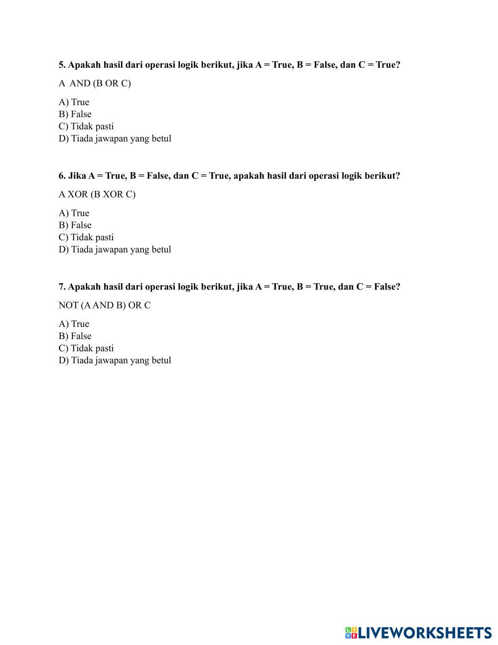 Created byNur Ayuni Asas Sains Komputer Tingkatan 2 Jawab semua soalan Age 14+ level: Tingkatan 2 Malay Author's Instructions My Google Classroom Courses × 0 classes selected (0 students total) Quick Access Select all classes (0 classes) All Classes Loading courses... Cancel Share Share to selected Course __COURSE_NAME__ __STUDENT_NAME__ (__STUDENT_EMAIL__) OPERATOR LOGIK Download Worksheet Validation Check my answers Emails my answers to my teacher Full name Group/level School subject Teacher's email or key code Close Submit Validating worksheet... (12) Your answers have been sent to your teacher. Good luck! OK We encountered an error submitting your answers. Please try again. OK Advertisement | Go Ad Free Created byNur Ayuni Asas Sains Komputer Tingkatan 2 Jawab semua soalan Age 14+ level: Tingkatan 2 Malay Author's Instructions