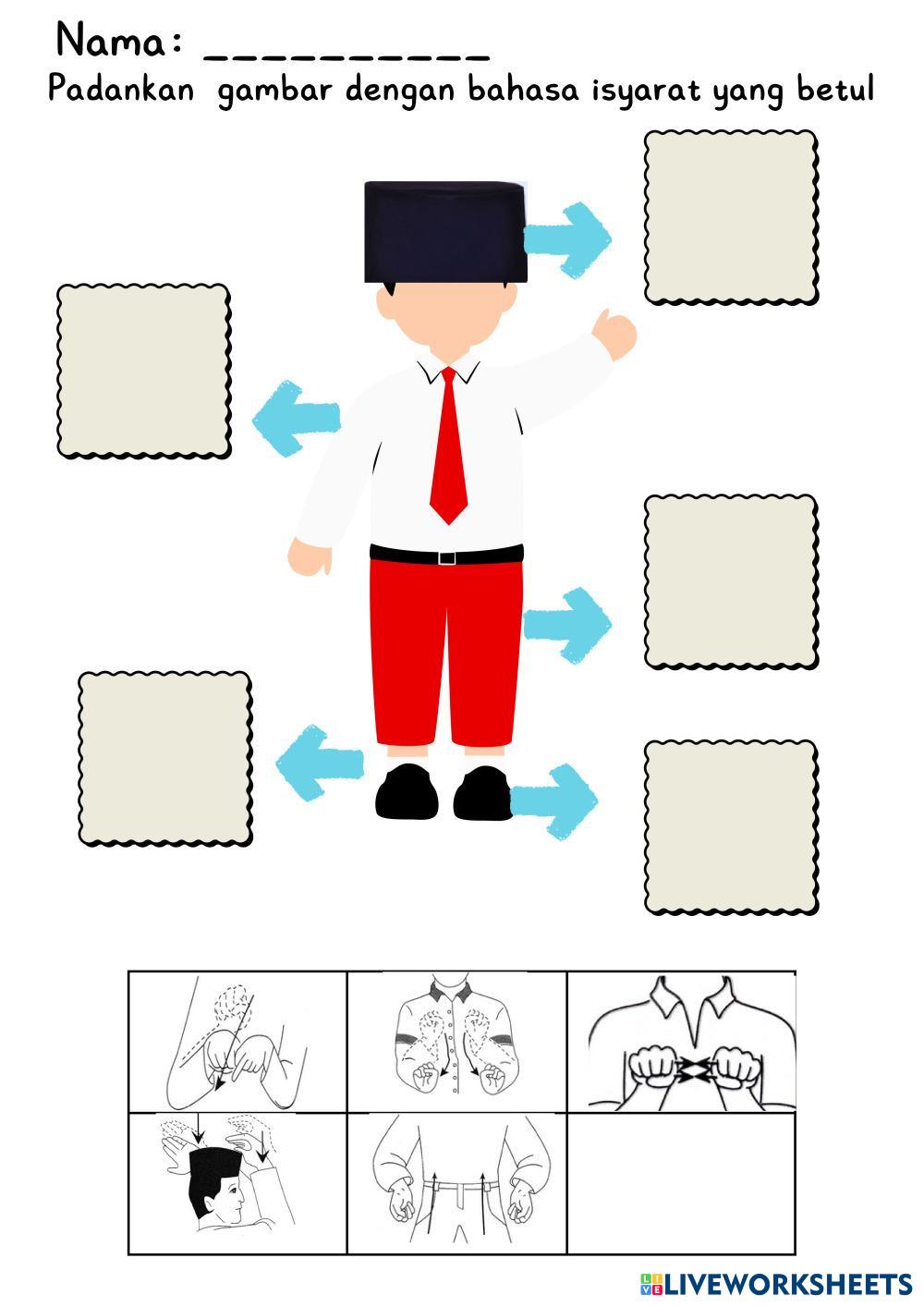 Created byAmal Nadzirah Bahasa Isyarat Komunikasi Pakaian Age 7-11 level: 1 Malay Author's Instructions My Google Classroom Courses × 0 classes selected (0 students total) Quick Access Select all classes (0 classes) All Classes Loading courses... Cancel Share Share to selected Course __COURSE_NAME__ __STUDENT_NAME__ (__STUDENT_EMAIL__) bahasa isyarat pakaian seragam sekolah Download Worksheet Validation Check my answers Emails my answers to my teacher Full name Group/level School subject Teacher's email or key code Close Submit Validating worksheet... (12) Your answers have been sent to your teacher. Good luck! OK We encountered an error submitting your answers. Please try again. OK Advertisement | Go Ad Free Created byAmal Nadzirah Bahasa Isyarat Komunikasi Pakaian Age 7-11 level: 1 Malay Author's Instructions