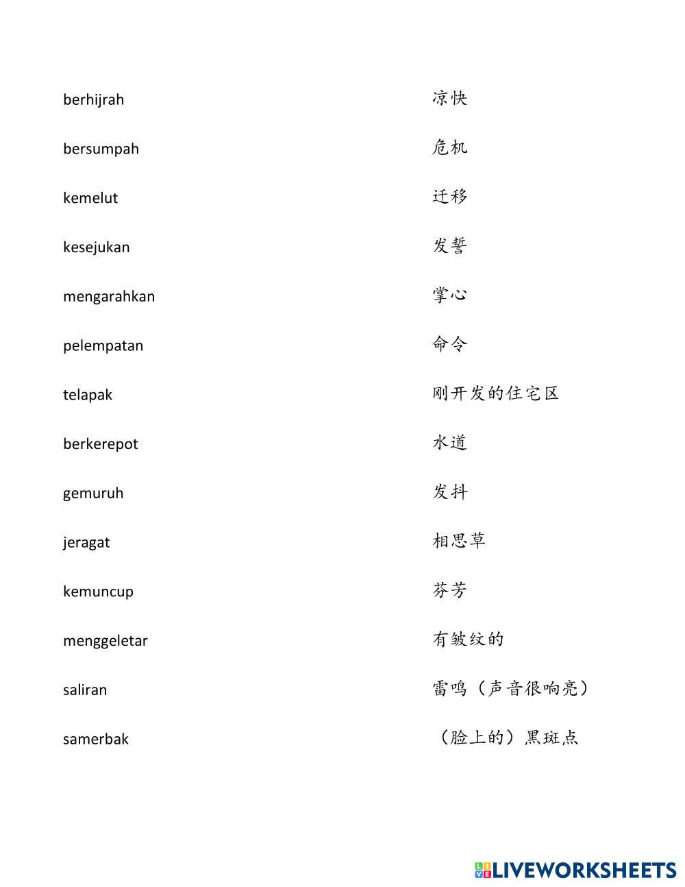 Created by hooini Bahasa Melayu (BM) Kosa kata Age 11-8 level: 5 Malay Author's Instructions My Google Classroom Courses × 0 classes selected (0 students total) Quick Access Select all classes (0 classes) All Classes Loading courses... Cancel Share Share to selected Course __COURSE_NAME__ __STUDENT_NAME__ (__STUDENT_EMAIL__) uint12b Download Worksheet Validation Check my answers Emails my answers to my teacher Full name Group/level School subject Teacher's email or key code Close Submit Validating worksheet... (12) Your answers have been sent to your teacher. Good luck! OK We encountered an error submitting your answers. Please try again. OK Advertisement | Go Ad Free Created by hooini Bahasa Melayu (BM) Kosa kata Age 11-8 level: 5 Malay Author's Instructions