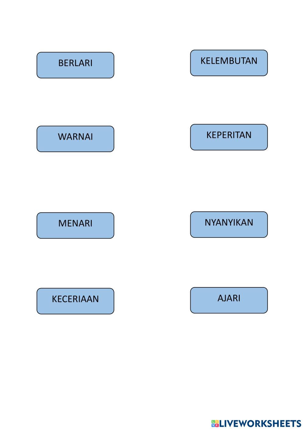 Created byPUTRI NURINA SYAFAIH BT MOHD ZAIN Bahasa Melayu (BM) Kata Berimbuhan Age 10-15 level: YEAR 4 Malay Author's Instructions My Google Classroom Courses × 0 classes selected (0 students total) Quick Access Select all classes (0 classes) All Classes Loading courses... Cancel Share Share to selected Course __COURSE_NAME__ __STUDENT_NAME__ (__STUDENT_EMAIL__) KATA BERIMBUHAN Download Worksheet Validation Check my answers Emails my answers to my teacher Full name Group/level School subject Teacher's email or key code Close Submit Validating worksheet... (12) Your answers have been sent to your teacher. Good luck! OK We encountered an error submitting your answers. Please try again. OK Advertisement | Go Ad Free Created byPUTRI NURINA SYAFAIH BT MOHD ZAIN Bahasa Melayu (BM) Kata Berimbuhan Age 10-15 level: YEAR 4 Malay Author's Instructions