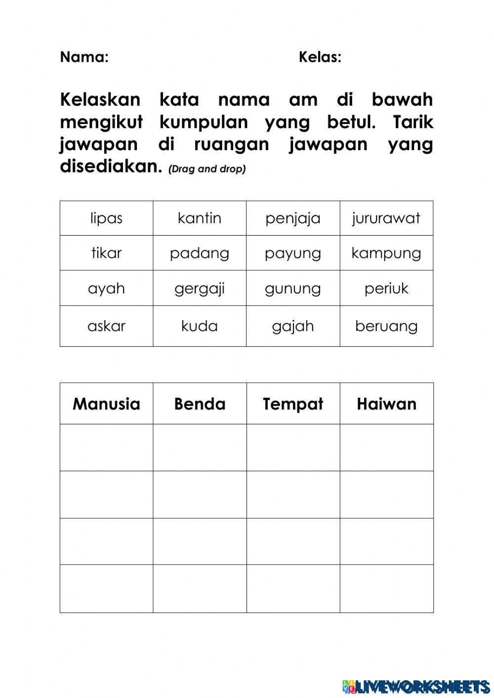 Created byPatreus Joennes Bahasa Melayu (BM) Kata Nama Am Age 8-15 level: standard Malay Author's Instructions My Google Classroom Courses × 0 classes selected (0 students total) Quick Access Select all classes (0 classes) All Classes Loading courses... Cancel Share Share to selected Course __COURSE_NAME__ __STUDENT_NAME__ (__STUDENT_EMAIL__) Kata Nama Am Download Worksheet Validation Check my answers Emails my answers to my teacher Full name Group/level School subject Teacher's email or key code Close Submit Validating worksheet... (12) Your answers have been sent to your teacher. Good luck! OK We encountered an error submitting your answers. Please try again. OK Advertisement | Go Ad Free Created byPatreus Joennes Bahasa Melayu (BM) Kata Nama Am Age 8-15 level: standard Malay Author's Instructions
