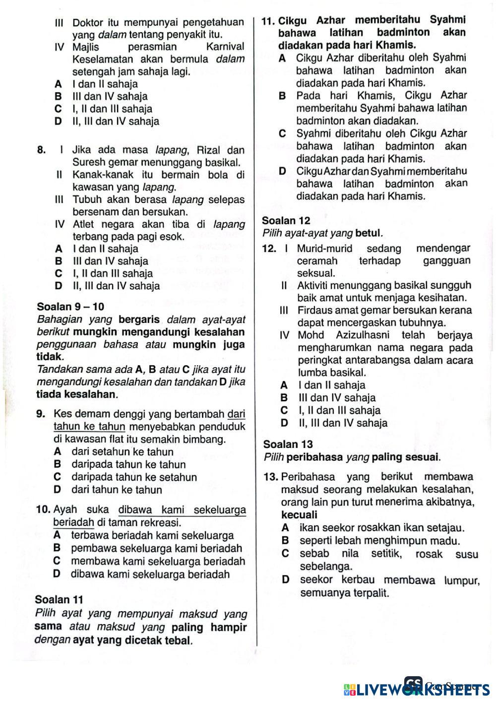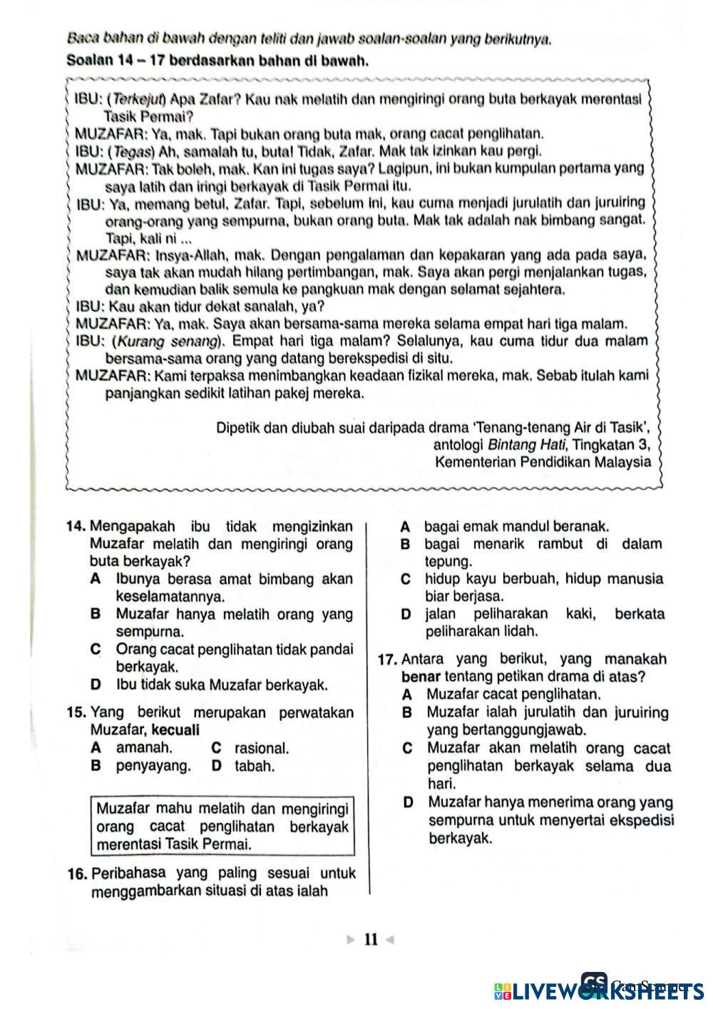 Created byhng winnie Bahasa Melayu (BM) Tatabahasa Age 13-18 level: 1 Malay Author's Instructions Jawab soalan dengan teliti My Google Classroom Courses × 0 classes selected (0 students total) Quick Access Select all classes (0 classes) All Classes Loading courses... Cancel Share Share to selected Course __COURSE_NAME__ __STUDENT_NAME__ (__STUDENT_EMAIL__) pt3 pep PENTAKSIRAN ms9-11 2024九月 Download Worksheet Validation Check my answers Emails my answers to my teacher Full name Group/level School subject Teacher's email or key code Close Submit Validating worksheet... (12) Your answers have been sent to your teacher. Good luck! OK We encountered an error submitting your answers. Please try again. OK Advertisement | Go Ad Free Created byhng winnie Bahasa Melayu (BM) Tatabahasa Age 13-18 level: 1 Malay Author's Instructions Jawab soalan dengan teliti