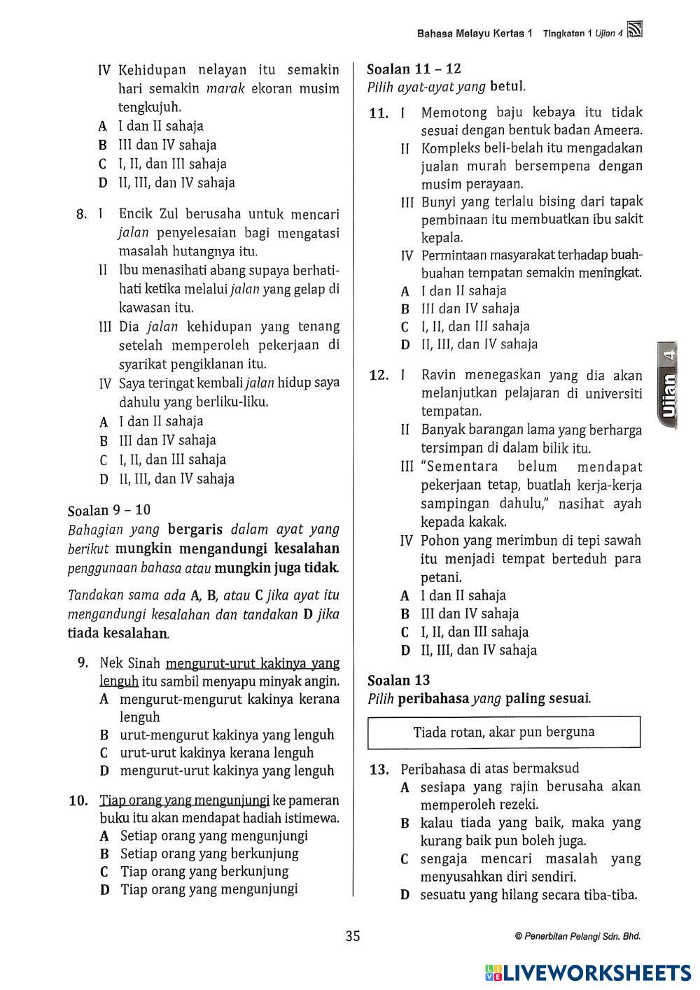 Created byKhoo Yeon Chen Bahasa Melayu (BM) Bahagian A Age 13-16 level: Form 1 Malay Author's Instructions My Google Classroom Courses × 0 classes selected (0 students total) Quick Access Select all classes (0 classes) All Classes Loading courses... Cancel Share Share to selected Course __COURSE_NAME__ __STUDENT_NAME__ (__STUDENT_EMAIL__) BM TINGKATAN 1 UJIAN 4 Download Worksheet Validation Check my answers Emails my answers to my teacher Full name Group/level School subject Teacher's email or key code Close Submit Validating worksheet... (12) Your answers have been sent to your teacher. Good luck! OK We encountered an error submitting your answers. Please try again. OK Advertisement | Go Ad Free Created byKhoo Yeon Chen Bahasa Melayu (BM) Bahagian A Age 13-16 level: Form 1 Malay Author's Instructions