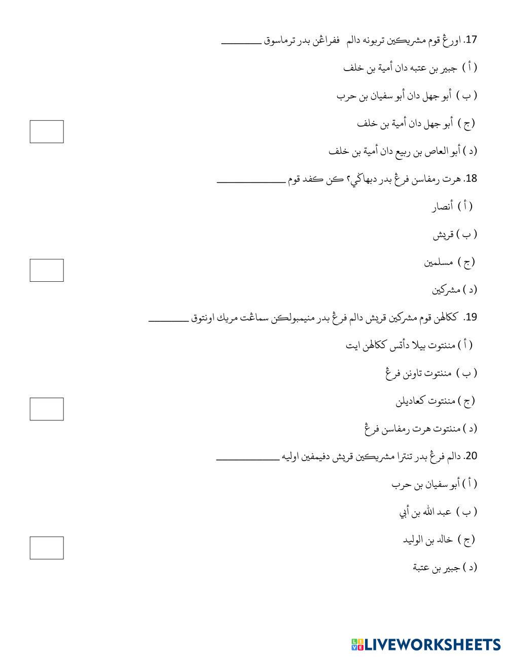 Created by UstazahZirah ESL Malay B1 Writing Malay Author's Instructions jawab soalan dengan betul My Google Classroom Courses × 0 classes selected (0 students total) Quick Access Select all classes (0 classes) All Classes Loading courses... Cancel Share Share to selected Course __COURSE_NAME__ __STUDENT_NAME__ (__STUDENT_EMAIL__) Sejarah Islam : membina masjid dan perang badar Download Worksheet Validation Check my answers Emails my answers to my teacher Full name Group/level School subject Teacher's email or key code Close Submit Validating worksheet... (12) Your answers have been sent to your teacher. Good luck! OK We encountered an error submitting your answers. Please try again. OK Advertisement | Go Ad Free Created by UstazahZirah ESL Malay B1 Writing Malay Author's Instructions jawab soalan dengan betul Explore Worksheets akhlak dosa dan taubat ESL B1 akhlak dosa dan taubat Writing - ESL jawab soalan dengan betul Jenayat : Zina ESL B1 Jenayat : Zina Writing - ESL Pilih jawapan yang betul. Solah 4: Waktu Sembahyang (ms18) ESL B1 Solah 4: Waktu Sembahyang (ms18) Writing - ESL Baca soalan dengan teliti sebelum menjawab Tajuid (Hukum Ra) ESL B1 Tajuid (Hukum Ra) Writing - ESL Jawab semua soalan dengan betul