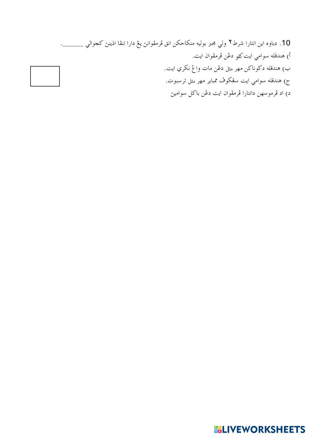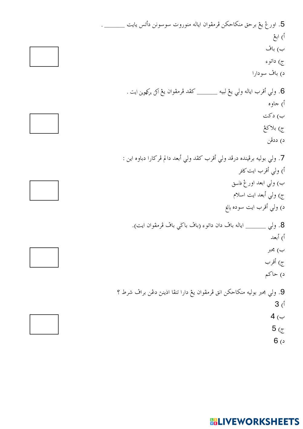 Created byKhallit Talib ESL Malay A1 Writing Malay Author's Instructions PILIH JAWAPAN YANG BETUL My Google Classroom Courses × 0 classes selected (0 students total) Quick Access Select all classes (0 classes) All Classes Loading courses... Cancel Share Share to selected Course __COURSE_NAME__ __STUDENT_NAME__ (__STUDENT_EMAIL__) LATIHAN 1 MUNAKAHAT DARJAH 6 TAJUK WALI Download Worksheet Validation Check my answers Emails my answers to my teacher Full name Group/level School subject Teacher's email or key code Close Submit Validating worksheet... (12) Your answers have been sent to your teacher. Good luck! OK We encountered an error submitting your answers. Please try again. OK Advertisement | Go Ad Free Created byKhallit Talib ESL Malay A1 Writing Malay Author's Instructions PILIH JAWAPAN YANG BETUL Explore Worksheets LATIHAN 1 AMALI AGAMA DARJAH 5 TAJUK SOLAT QASAR DAN JAMAK ESL A1 LATIHAN 1 AMALI AGAMA DARJAH 5 TAJUK SOLAT QASAR DAN JAMAK Writing - ESL WORD SEARCH LATIHAN 2 JENAYAT DARJAH 6 TAJUK MENUDUH BERZINA ESL A1 LATIHAN 2 JENAYAT DARJAH 6 TAJUK MENUDUH BERZINA Writing - ESL PILIH JAWAPAN YANG BETUL LATIHAN 1 JENAYAT DARJAH 6 TAJUK MENUDUH BERZINA ESL A1 LATIHAN 1 JENAYAT DARJAH 6 TAJUK MENUDUH BERZINA Writing - ESL PILIH JAWAPAN YANG BETUL LATIHAN 2 HAJI UMRAH DARJAH 6 TAJUK TAHALUL ESL A1 LATIHAN 2 HAJI UMRAH DARJAH 6 TAJUK TAHALUL Writing - ESL PILIH JAWAPAN YANG BETUL