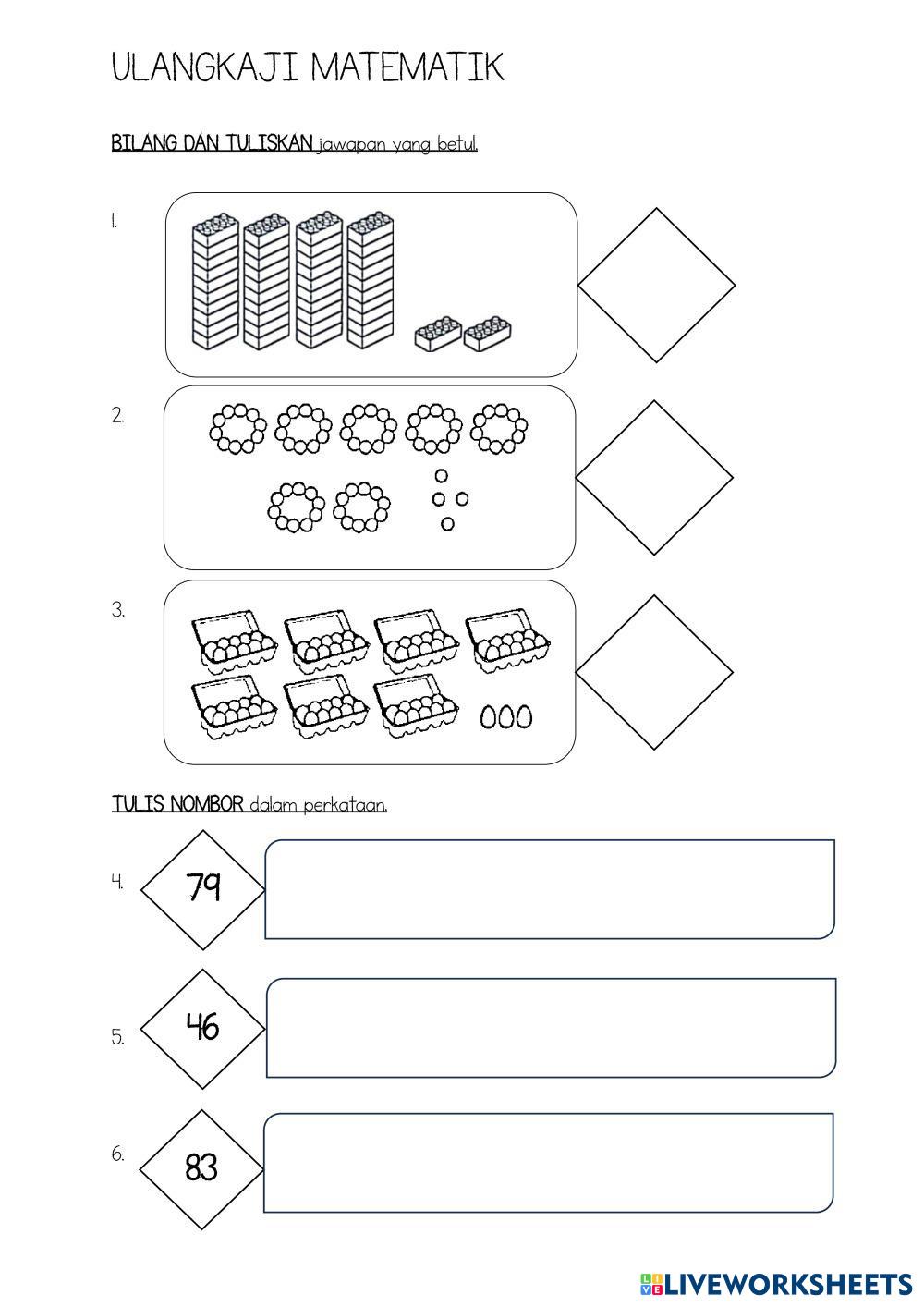 Created by Eyta_eta Math Elementary 1st grade Place Value Malay Author's Instructions Baca dan jawab dengan betul. My Google Classroom Courses × 0 classes selected (0 students total) Quick Access Select all classes (0 classes) All Classes Loading courses... Cancel Share Share to selected Course __COURSE_NAME__ __STUDENT_NAME__ (__STUDENT_EMAIL__) Ulangkaji 2 Download Worksheet Validation Check my answers Emails my answers to my teacher Full name Group/level School subject Teacher's email or key code Close Submit Validating worksheet... (12) Your answers have been sent to your teacher. Good luck! OK We encountered an error submitting your answers. Please try again. OK Advertisement | Go Ad Free Created by Eyta_eta Math Elementary 1st grade Place Value Malay Author's Instructions Baca dan jawab dengan betul. Explore Worksheets חקר נתונים כיתה ד Math 1st grade חקר נתונים כיתה ד Place Value - Math ענו על כל השאלות. לחצו על Finish שלחו, אל תשכחו לכתוב את השם האמיתי שלכם . LKPD Matematika Math 1st grade LKPD Matematika Place Value - Math Kerjakan soal ini dengan baik dan benar! LKPD Matematika Math 1st grade LKPD Matematika Place Value - Math Kerjakan latihan ini dengan baik dan benar! Modelo Items Matematica 1er. grado Math 1st grade Modelo Items Matematica 1er. grado Place Value - Math Este es un modelo de ítems que responden a los aprendizajes básicos y a los procesos que serán evaluados en las pruebas censales previstas para fin de año para alumnos de 1er grado en el Área de Matemática. Se sugiere que los alumnos realicen los ítems para familiarizarse con este tipo de actividades
