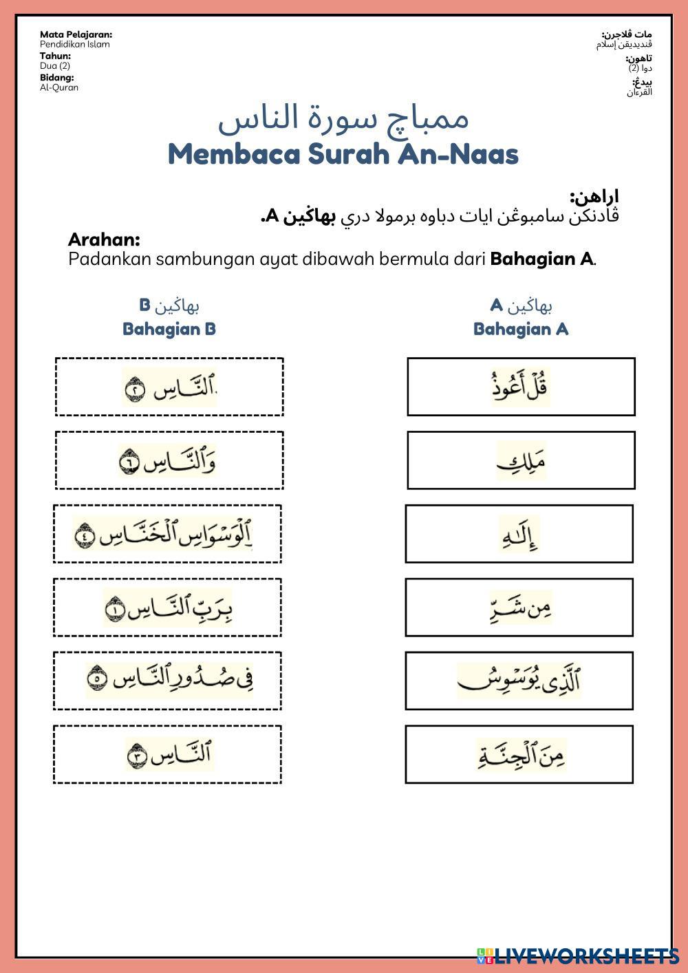 Sila sambungkan potongan ayat dibawah bermula dari Bahagian A, kemudian diikuti oleh Bahagian B.
