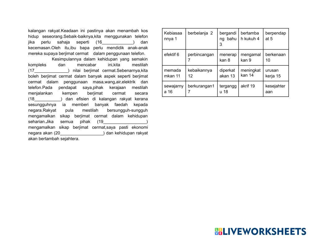 Created byKhoo Yeon Chen Social Studies Middle School 6th grade Community and Culture Malay Author's Instructions KARANGAN My Google Classroom Courses × 0 classes selected (0 students total) Quick Access Select all classes (0 classes) All Classes Loading courses... Cancel Share Share to selected Course __COURSE_NAME__ __STUDENT_NAME__ (__STUDENT_EMAIL__) BM PENULISAN PRAKTIS 1 Download Worksheet Validation Check my answers Emails my answers to my teacher Full name Group/level School subject Teacher's email or key code Close Submit Validating worksheet... (12) Your answers have been sent to your teacher. Good luck! OK We encountered an error submitting your answers. Please try again. OK Advertisement | Go Ad Free Created byKhoo Yeon Chen Social Studies Middle School 6th grade Community and Culture Malay Author's Instructions KARANGAN Explore Worksheets BM PENULISAN PRAKTIS 3 Social Studies 6th grade BM PENULISAN PRAKTIS 3 Community and Culture - Social Studies KARANGAN Fiche 03. La mélodie Social Studies 6th grade Fiche 03. La mélodie Community and Culture - Social Studies Complète BM PT3 PRAKTIS 223 Social Studies 6th grade BM PT3 PRAKTIS 223 Community and Culture - Social Studies TATABAHASA BM PT3 PRAKTIS 222 Social Studies 6th grade BM PT3 PRAKTIS 222 Community and Culture - Social Studies BAHAGIAN A