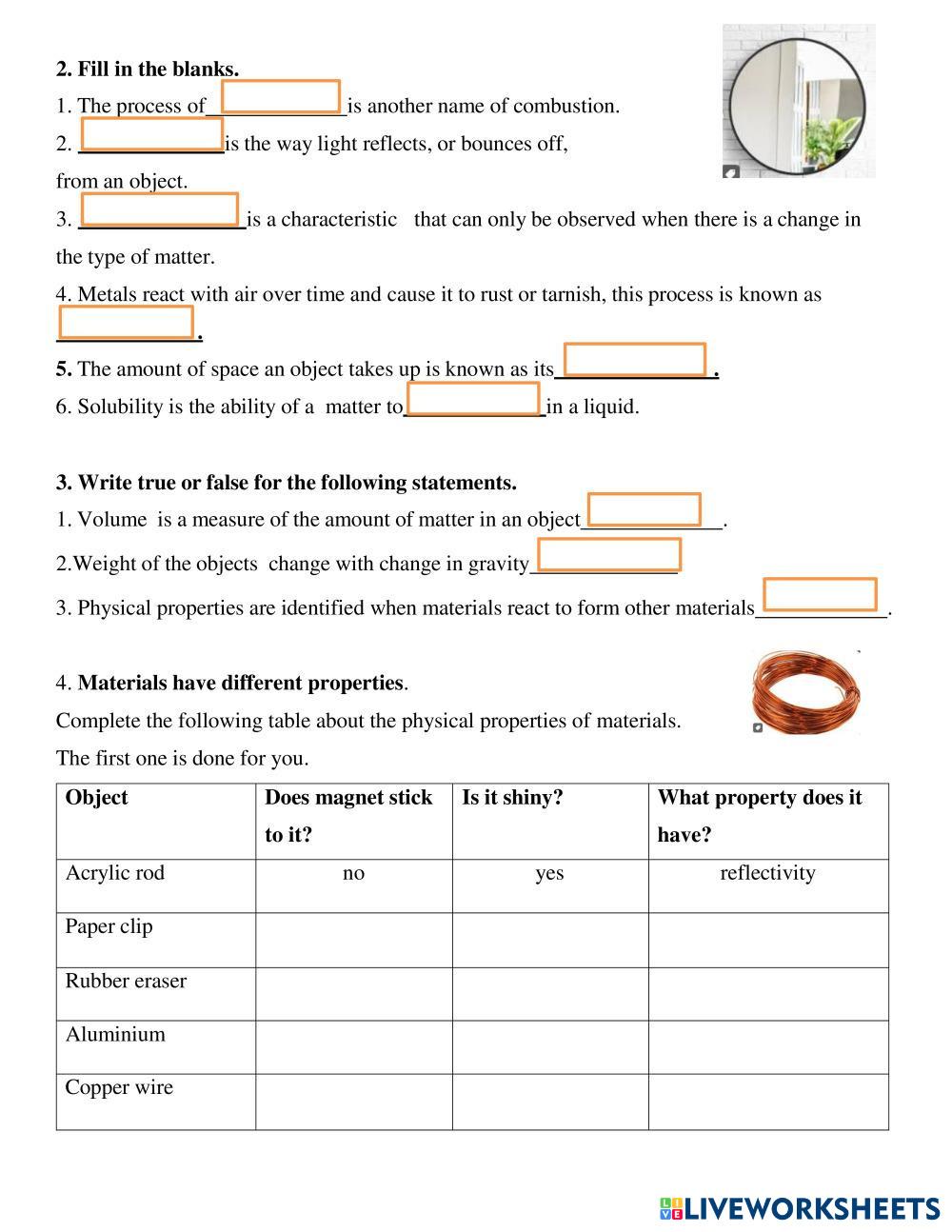 Created by alfredarnaiz Science Science Age 10-14 level: Grade 5 English Author's Instructions My Google Classroom Courses × 0 classes selected (0 students total) Quick Access Select all classes (0 classes) All Classes Loading courses... Cancel Share Share to selected Course __COURSE_NAME__ __STUDENT_NAME__ (__STUDENT_EMAIL__) Assessment revision Download Worksheet Validation Check my answers Emails my answers to my teacher Full name Group/level School subject Teacher's email or key code Close Submit Validating worksheet... (12) Your answers have been sent to your teacher. Good luck! OK We encountered an error submitting your answers. Please try again. OK Advertisement | Go Ad Free Created by alfredarnaiz Science Science Age 10-14 level: Grade 5 English Author's Instructions
