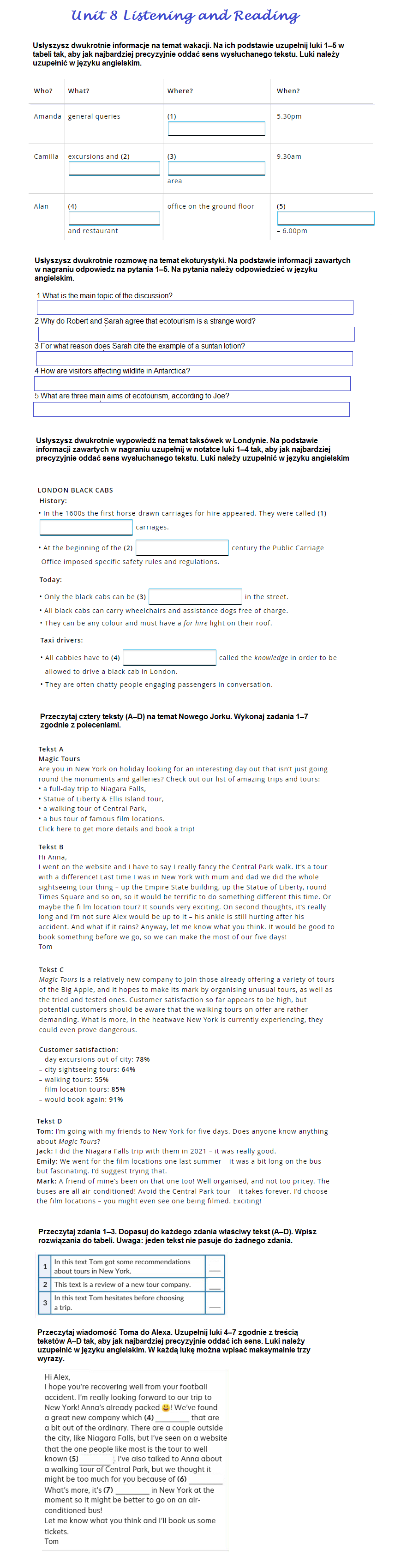 Created by bettyh English as a Second Language (ESL) listening Age 15+ level: grade 12 Polish Author's Instructions My Google Classroom Courses × 0 classes selected (0 students total) Quick Access Select all classes (0 classes) All Classes Loading courses... Cancel Share Share to selected Course __COURSE_NAME__ __STUDENT_NAME__ (__STUDENT_EMAIL__) Rep Unit 8 listenand read Download Worksheet Validation Check my answers Emails my answers to my teacher Full name Group/level School subject Teacher's email or key code Close Submit Validating worksheet... (12) Your answers have been sent to your teacher. Good luck! OK We encountered an error submitting your answers. Please try again. OK Advertisement | Go Ad Free Created by bettyh English as a Second Language (ESL) listening Age 15+ level: grade 12 Polish Author's Instructions