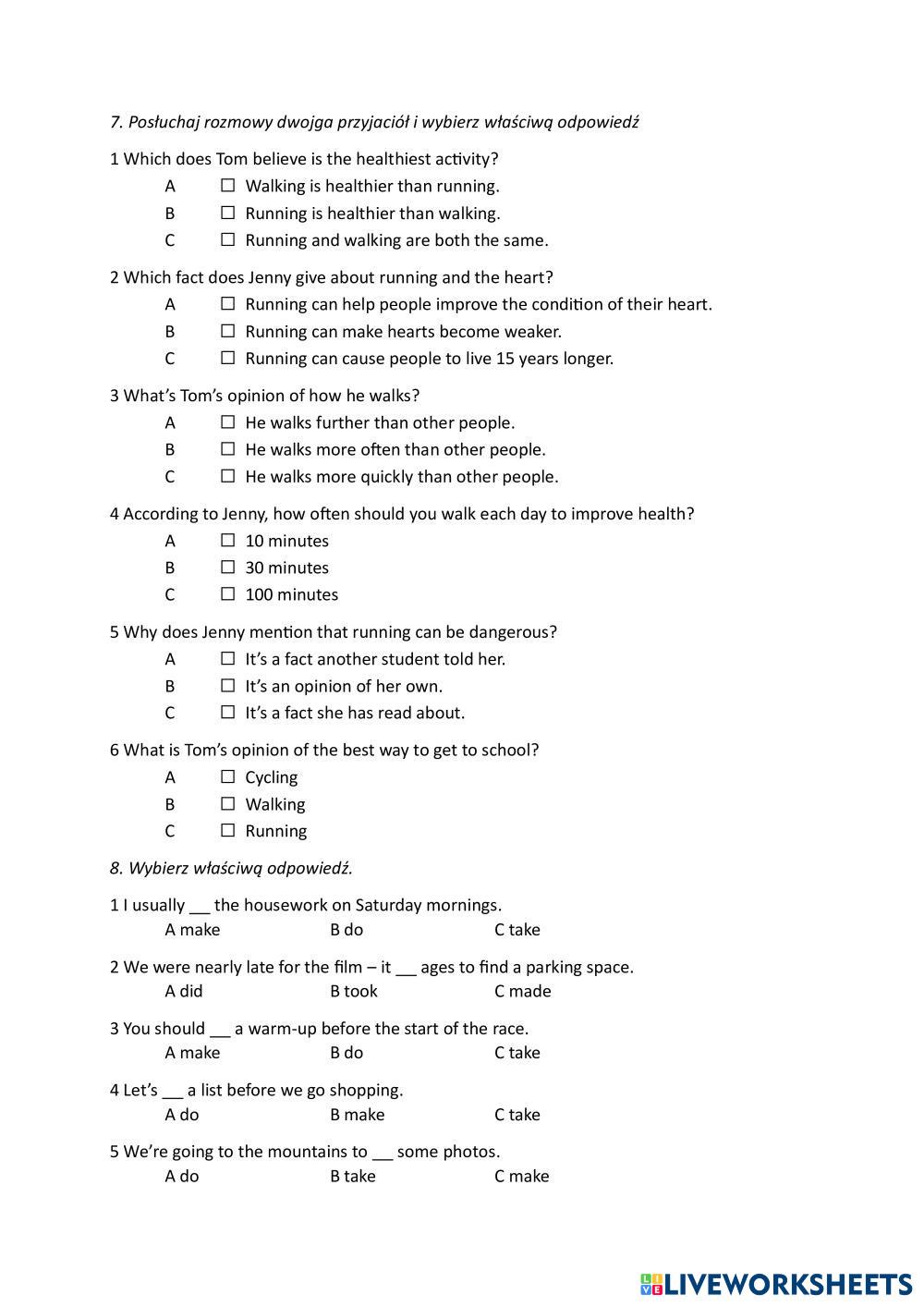 Test for unit 3 in the coursebook