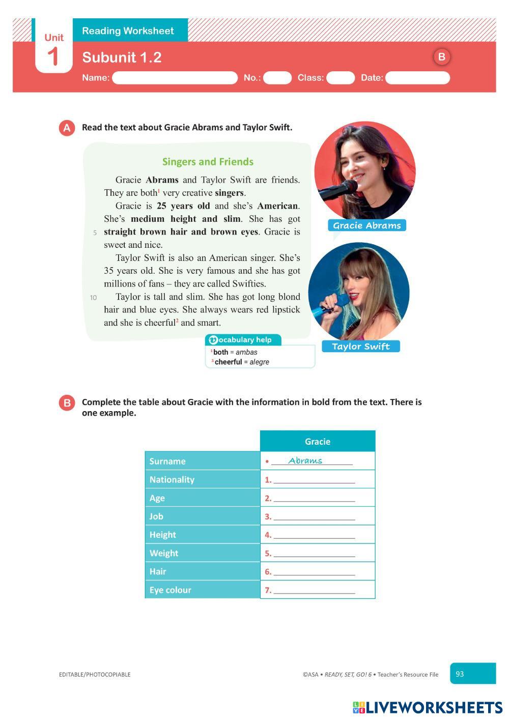 Reading worksheet.