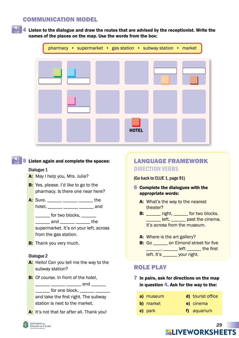 Created byDambergh da Mota ESL English A2 Listening Portuguese Author's Instructions LEA 3º Ano My Google Classroom Courses × 0 classes selected (0 students total) Quick Access Select all classes (0 classes) All Classes Loading courses... Cancel Share Share to selected Course __COURSE_NAME__ __STUDENT_NAME__ (__STUDENT_EMAIL__) LEA 3º Ano - UNIT 11 Giving Directions Outdoors Download Worksheet Validation Check my answers Emails my answers to my teacher Full name Group/level School subject Teacher's email or key code Close Submit Validating worksheet... (12) Your answers have been sent to your teacher. Good luck! OK We encountered an error submitting your answers. Please try again. OK Advertisement | Go Ad Free Created byDambergh da Mota ESL English A2 Listening Portuguese Author's Instructions LEA 3º Ano Explore Worksheets programme ESL A2 programme Listening - ESL listen Future will will/be going to/present ESL A2 Future will will/be going to/present Listening - ESL Please listen to the video and respond to the following questions An Exciting Job Listening A2 Occupations Pilot ESL A2 An Exciting Job Listening A2 Occupations Pilot Listening - ESL Listen and fill in the blanks Present Continuous for Future Arrangements -- Listening ESL A2 Present Continuous for Future Arrangements -- Listening Listening - ESL Listening