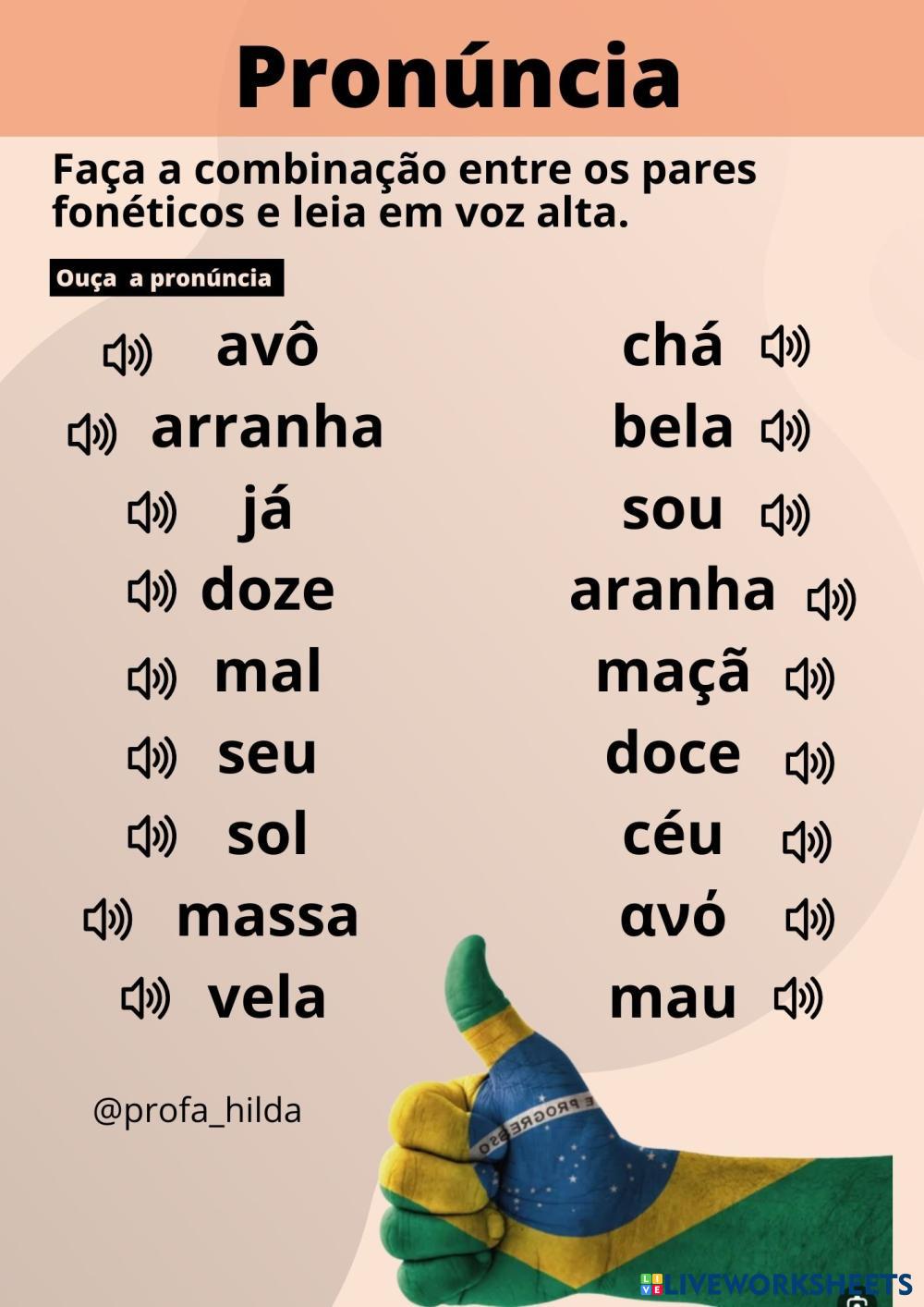 Created byhilda monterola lima FONÉTICA E FONOLOGIA VOWELS Age 9-13 level: elemental Portuguese Author's Instructions Complete a ficha My Google Classroom Courses × 0 classes selected (0 students total) Quick Access Select all classes (0 classes) All Classes Loading courses... Cancel Share Share to selected Course __COURSE_NAME__ __STUDENT_NAME__ (__STUDENT_EMAIL__) Fonética Download Worksheet Validation Check my answers Emails my answers to my teacher Full name Group/level School subject Teacher's email or key code Close Submit Validating worksheet... (12) Your answers have been sent to your teacher. Good luck! OK We encountered an error submitting your answers. Please try again. OK Advertisement | Go Ad Free Created byhilda monterola lima FONÉTICA E FONOLOGIA VOWELS Age 9-13 level: elemental Portuguese Author's Instructions Complete a ficha