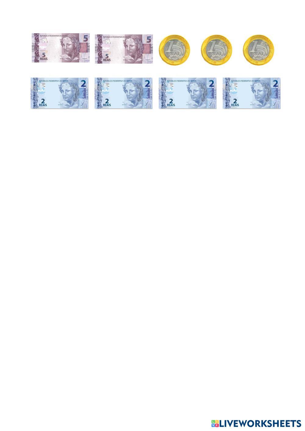 Reconhecer cédulas e moedas para pagar as compras feitas pela d. Maricota.