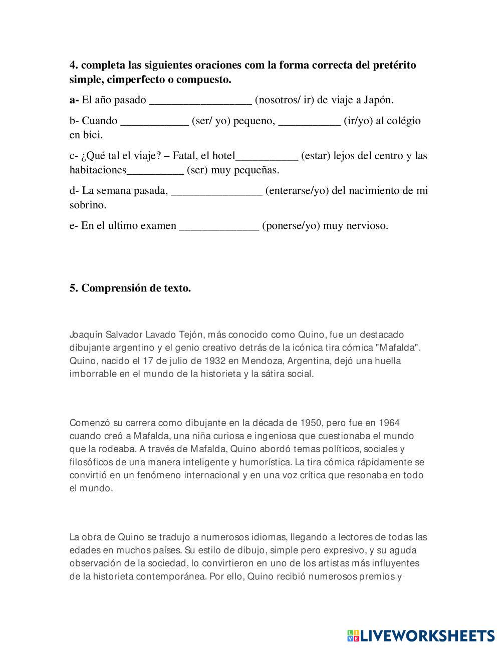 - Verbo ser y estar, pretérito simple e imperfecto