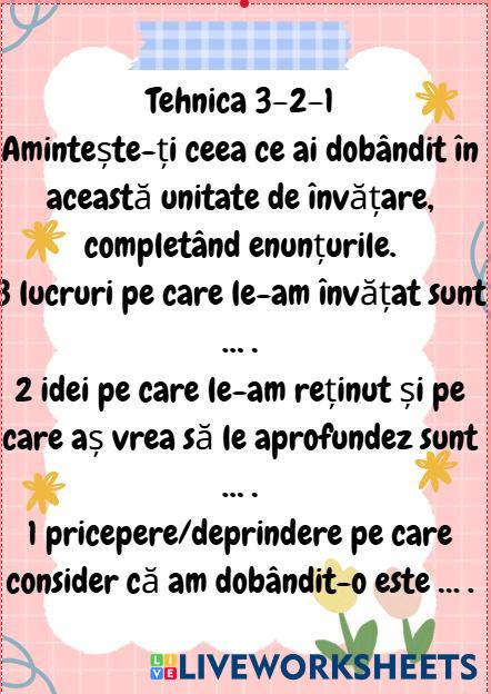 Created by victoritascholler ESL Romanian A2 Writing Romanian Author's Instructions completati My Google Classroom Courses × 0 classes selected (0 students total) Quick Access Select all classes (0 classes) All Classes Loading courses... Cancel Share Share to selected Course __COURSE_NAME__ __STUDENT_NAME__ (__STUDENT_EMAIL__) 3-2-1 Download Worksheet Validation Check my answers Emails my answers to my teacher Full name Group/level School subject Teacher's email or key code Close Submit Validating worksheet... (12) Your answers have been sent to your teacher. Good luck! OK We encountered an error submitting your answers. Please try again. OK Advertisement | Go Ad Free Created by victoritascholler ESL Romanian A2 Writing Romanian Author's Instructions completati Explore Worksheets munca independenta ESL A2 munca independenta Writing - ESL completati fisa Scriem corect sa/s-a ESL A2 Scriem corect sa/s-a Writing - ESL Completează propozițiile cu sa/s-a. Activitate elevi nonviolenta ESL A2 Activitate elevi nonviolenta Writing - ESL Raspunde la întrebări! Test de evaluare ESL A2 Test de evaluare Writing - ESL Citiți cu atenție și rezolvați!