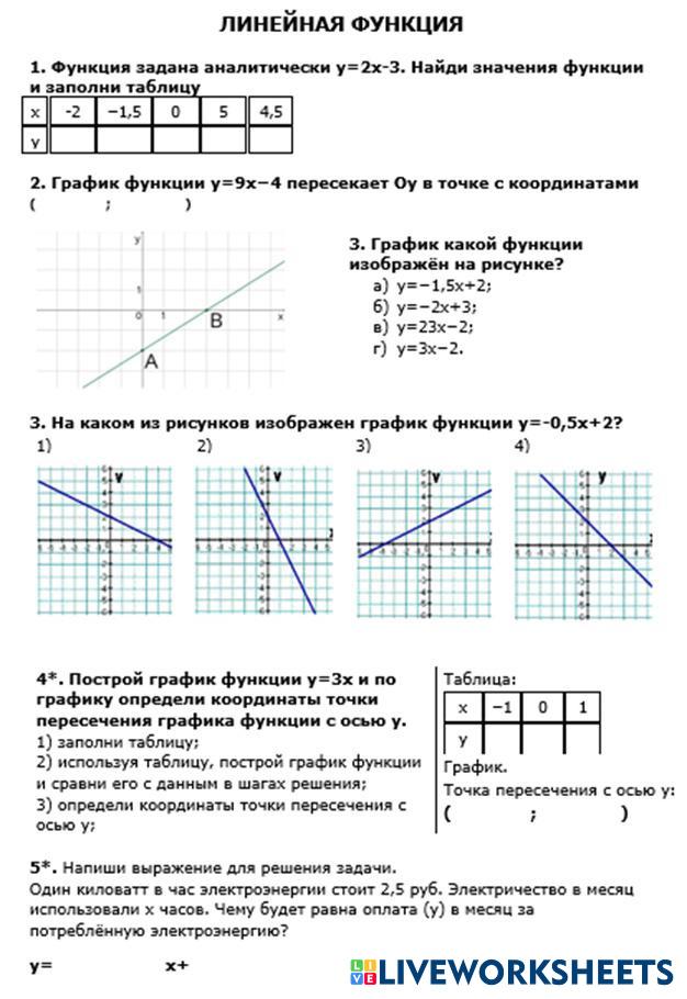Created byOlga Barinskaya Algebra algebra Age 12-18 level: 7 Russian Author's Instructions My Google Classroom Courses × 0 classes selected (0 students total) Quick Access Select all classes (0 classes) All Classes Loading courses... Cancel Share Share to selected Course __COURSE_NAME__ __STUDENT_NAME__ (__STUDENT_EMAIL__) Линейная функция Download Worksheet Validation Check my answers Emails my answers to my teacher Full name Group/level School subject Teacher's email or key code Close Submit Validating worksheet... (12) Your answers have been sent to your teacher. Good luck! OK We encountered an error submitting your answers. Please try again. OK Advertisement | Go Ad Free Created byOlga Barinskaya Algebra algebra Age 12-18 level: 7 Russian Author's Instructions