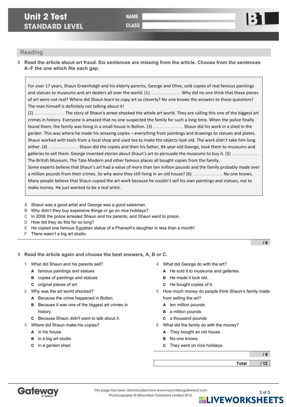 Created by incolink English as a Second Language (ESL) Tests Age 14-15 level: B1 Russian Author's Instructions My Google Classroom Courses × 0 classes selected (0 students total) Quick Access Select all classes (0 classes) All Classes Loading courses... Cancel Share Share to selected Course __COURSE_NAME__ __STUDENT_NAME__ (__STUDENT_EMAIL__) Gateway B1 Unit 2 Test Download Worksheet Validation Check my answers Emails my answers to my teacher Full name Group/level School subject Teacher's email or key code Close Submit Validating worksheet... (12) Your answers have been sent to your teacher. Good luck! OK We encountered an error submitting your answers. Please try again. OK Advertisement | Go Ad Free Created by incolink English as a Second Language (ESL) Tests Age 14-15 level: B1 Russian Author's Instructions