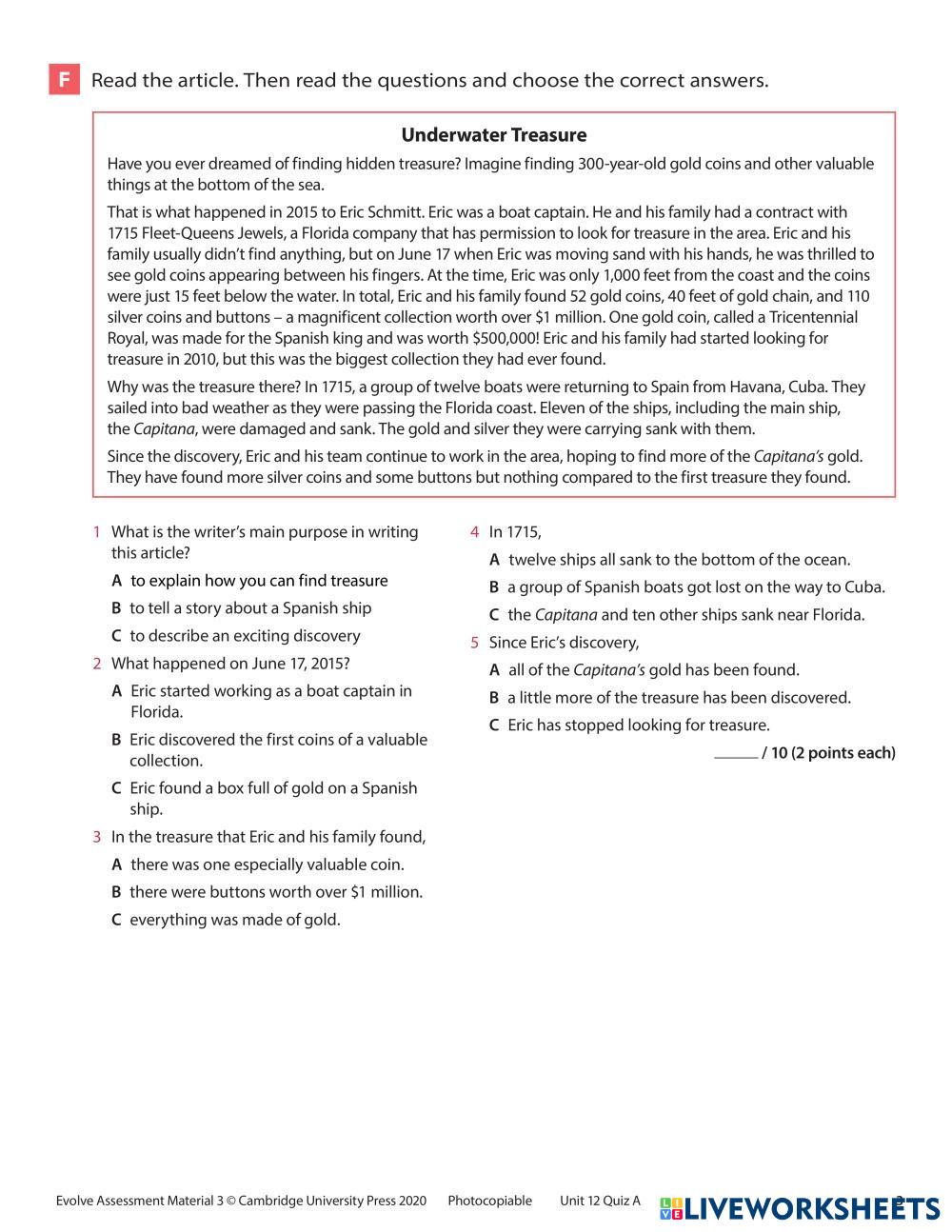Created by incolink English as a Second Language (ESL) Quizzes Age 18+ level: B1 Russian Author's Instructions My Google Classroom Courses × 0 classes selected (0 students total) Quick Access Select all classes (0 classes) All Classes Loading courses... Cancel Share Share to selected Course __COURSE_NAME__ __STUDENT_NAME__ (__STUDENT_EMAIL__) Evolve 3 Quiz 12 Download Worksheet Validation Check my answers Emails my answers to my teacher Full name Group/level School subject Teacher's email or key code Close Submit Validating worksheet... (12) Your answers have been sent to your teacher. Good luck! OK We encountered an error submitting your answers. Please try again. OK Advertisement | Go Ad Free Created by incolink English as a Second Language (ESL) Quizzes Age 18+ level: B1 Russian Author's Instructions