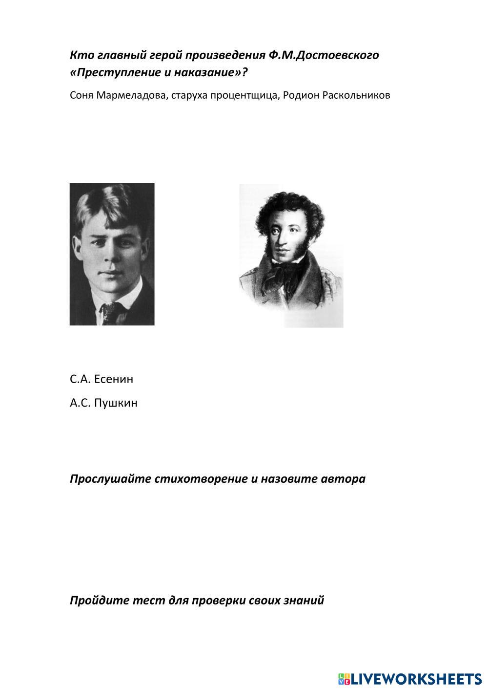 Created byMelenteva Ekaterina Родная литература Литература Age 7+ level: средний Russian Author's Instructions My Google Classroom Courses × 0 classes selected (0 students total) Quick Access Select all classes (0 classes) All Classes Loading courses... Cancel Share Share to selected Course __COURSE_NAME__ __STUDENT_NAME__ (__STUDENT_EMAIL__) Мелентьева Екатерина Download Worksheet Validation Check my answers Emails my answers to my teacher Full name Group/level School subject Teacher's email or key code Close Submit Validating worksheet... (12) Your answers have been sent to your teacher. Good luck! OK We encountered an error submitting your answers. Please try again. OK Advertisement | Go Ad Free Created byMelenteva Ekaterina Родная литература Литература Age 7+ level: средний Russian Author's Instructions