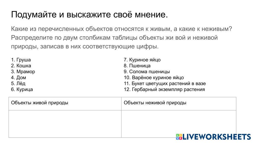Природа — это все, что окружает человека и при этом им не создано. Живая природа — это все объекты природы, которые растут, развиваются, размножаются, дышат и питаются. К живой природе относят все живые существа — от микроорганизмов и бактерий до животных и человека.