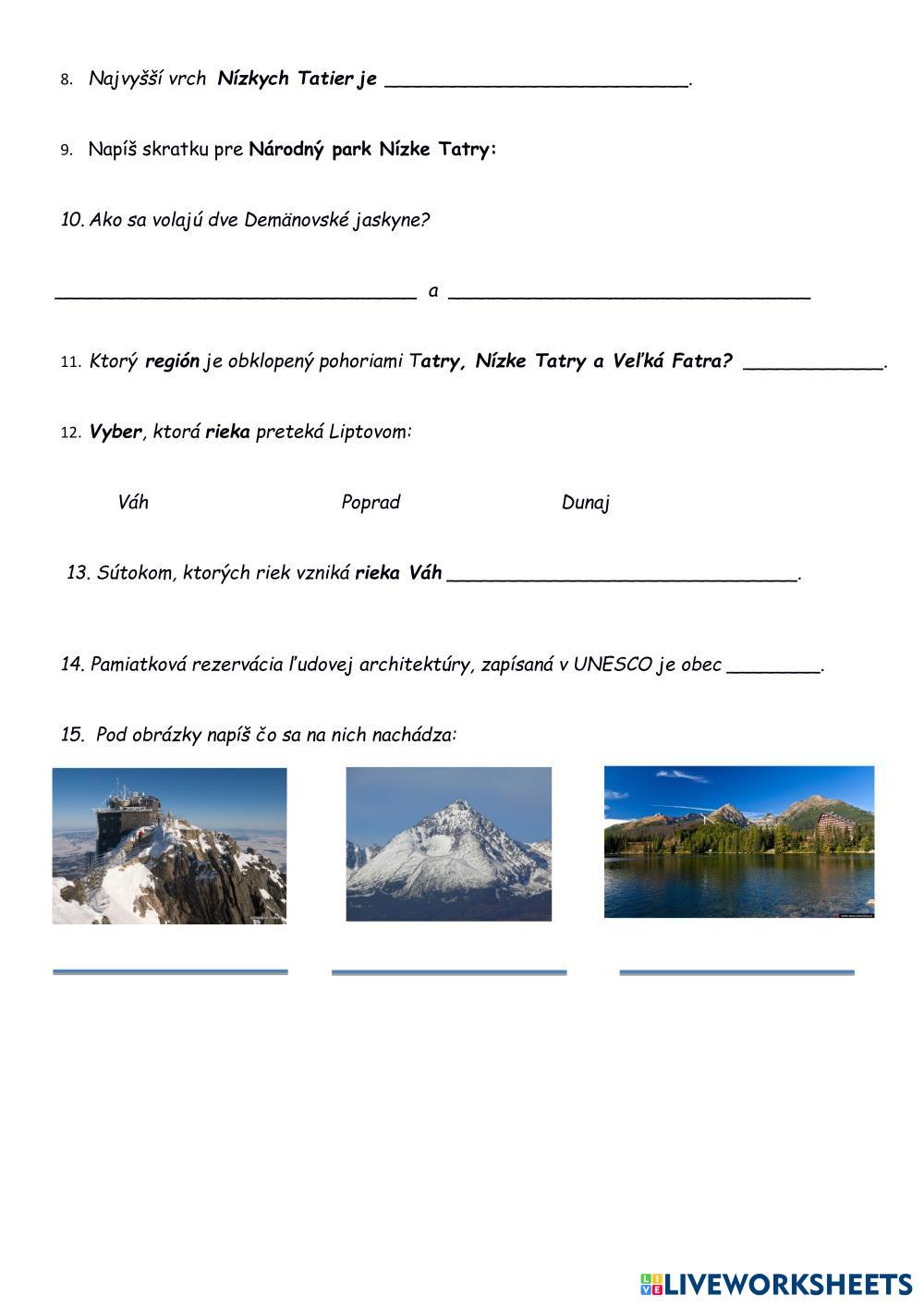 Created byJanka Rybárová Vlastiveda Kvíz Age 9-14 level: 1. Slovak Author's Instructions My Google Classroom Courses × 0 classes selected (0 students total) Quick Access Select all classes (0 classes) All Classes Loading courses... Cancel Share Share to selected Course __COURSE_NAME__ __STUDENT_NAME__ (__STUDENT_EMAIL__) Od Tatier po Liptov Download Worksheet Validation Check my answers Emails my answers to my teacher Full name Group/level School subject Teacher's email or key code Close Submit Validating worksheet... (12) Your answers have been sent to your teacher. Good luck! OK We encountered an error submitting your answers. Please try again. OK Advertisement | Go Ad Free Created byJanka Rybárová Vlastiveda Kvíz Age 9-14 level: 1. Slovak Author's Instructions