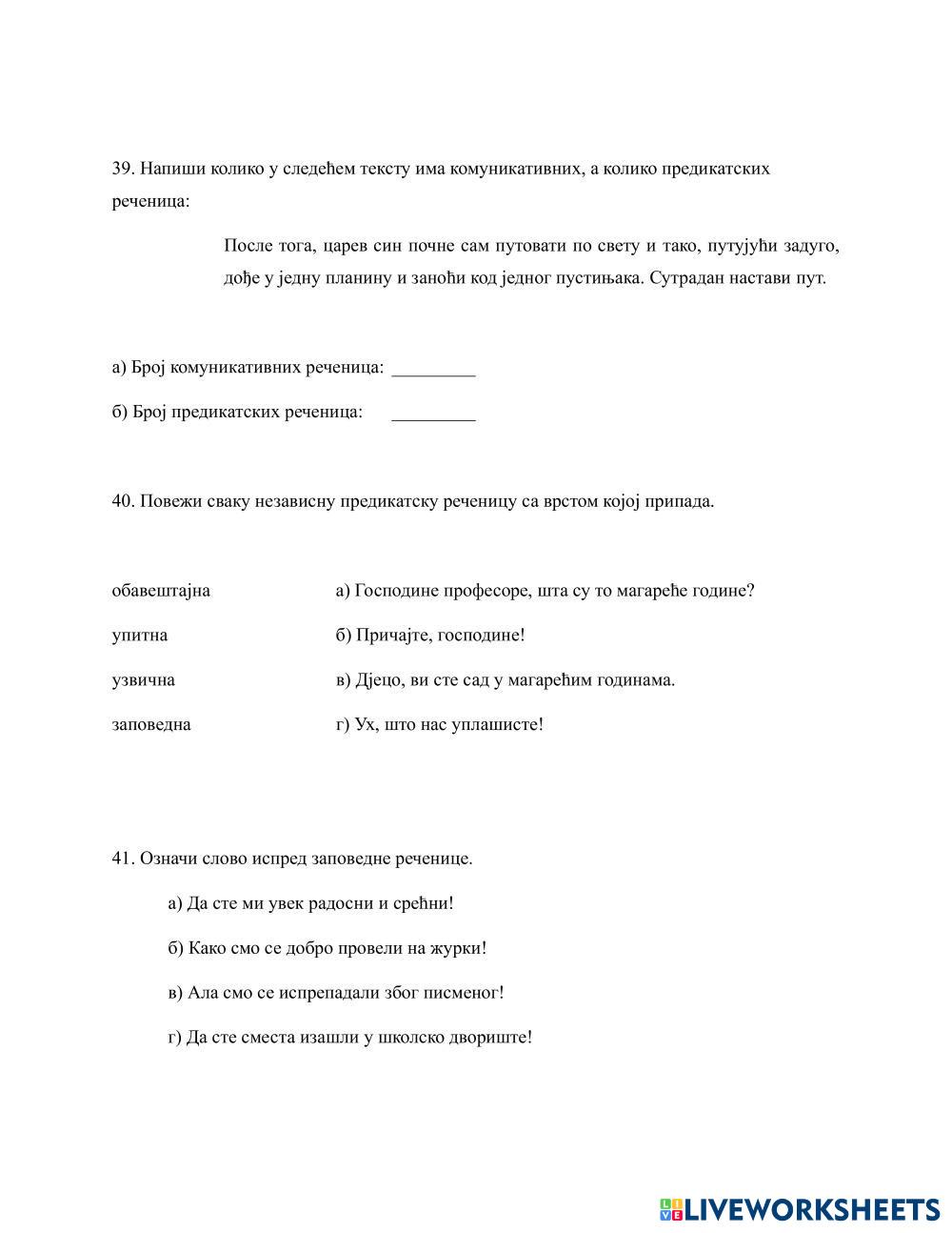 Created by Stefan88 Serbian language Grammar Age 14+ level: 8th grade Serbian Author's Instructions My Google Classroom Courses × 0 classes selected (0 students total) Quick Access Select all classes (0 classes) All Classes Loading courses... Cancel Share Share to selected Course __COURSE_NAME__ __STUDENT_NAME__ (__STUDENT_EMAIL__) Вежбања 3 - домаћи задатак из српског језика - Граматика Download Worksheet Validation Check my answers Emails my answers to my teacher Full name Group/level School subject Teacher's email or key code Close Submit Validating worksheet... (12) Your answers have been sent to your teacher. Good luck! OK We encountered an error submitting your answers. Please try again. OK Advertisement | Go Ad Free Created by Stefan88 Serbian language Grammar Age 14+ level: 8th grade Serbian Author's Instructions