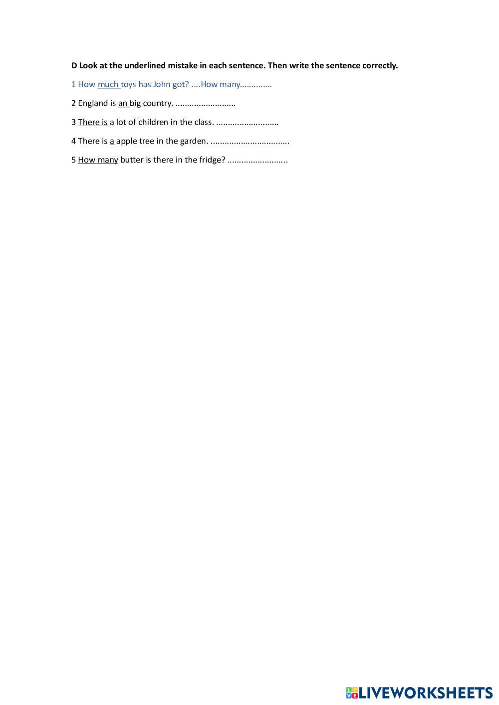 Created byManuel English as a Second Language (ESL) Grammar Age 12-17 level: 1 ESO English Author's Instructions Activities about There is/are and quantifiers My Google Classroom Courses × 0 classes selected (0 students total) Quick Access Select all classes (0 classes) All Classes Loading courses... Cancel Share Share to selected Course __COURSE_NAME__ __STUDENT_NAME__ (__STUDENT_EMAIL__) There is/are and quantifiers Download Worksheet Validation Check my answers Emails my answers to my teacher Full name Group/level School subject Teacher's email or key code Close Submit Validating worksheet... (12) Your answers have been sent to your teacher. Good luck! OK We encountered an error submitting your answers. Please try again. OK Advertisement | Go Ad Free Created byManuel English as a Second Language (ESL) Grammar Age 12-17 level: 1 ESO English Author's Instructions Activities about There is/are and quantifiers