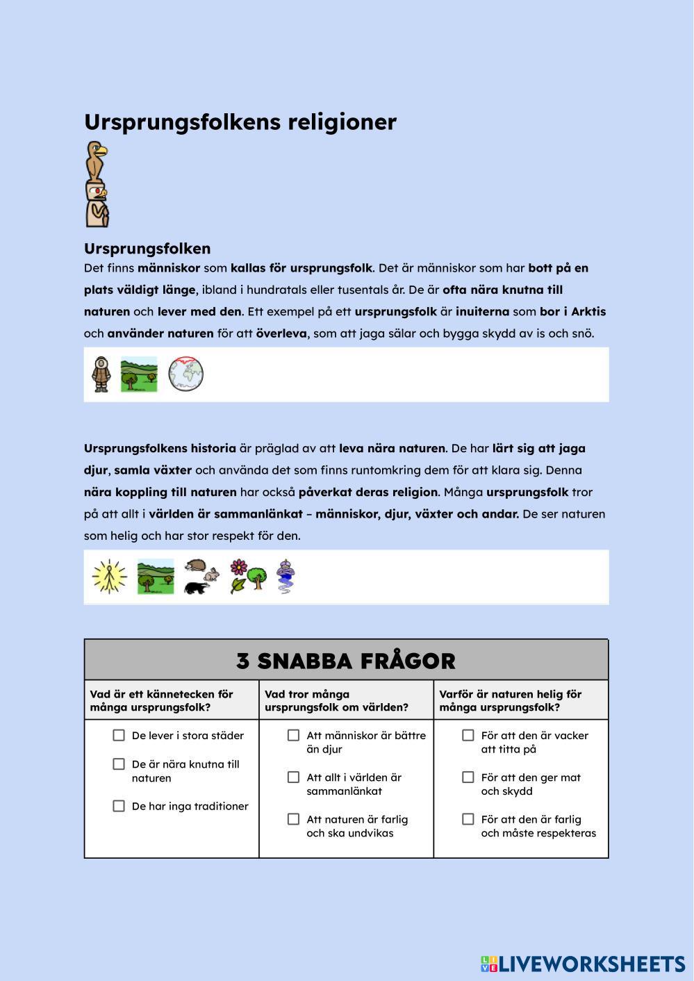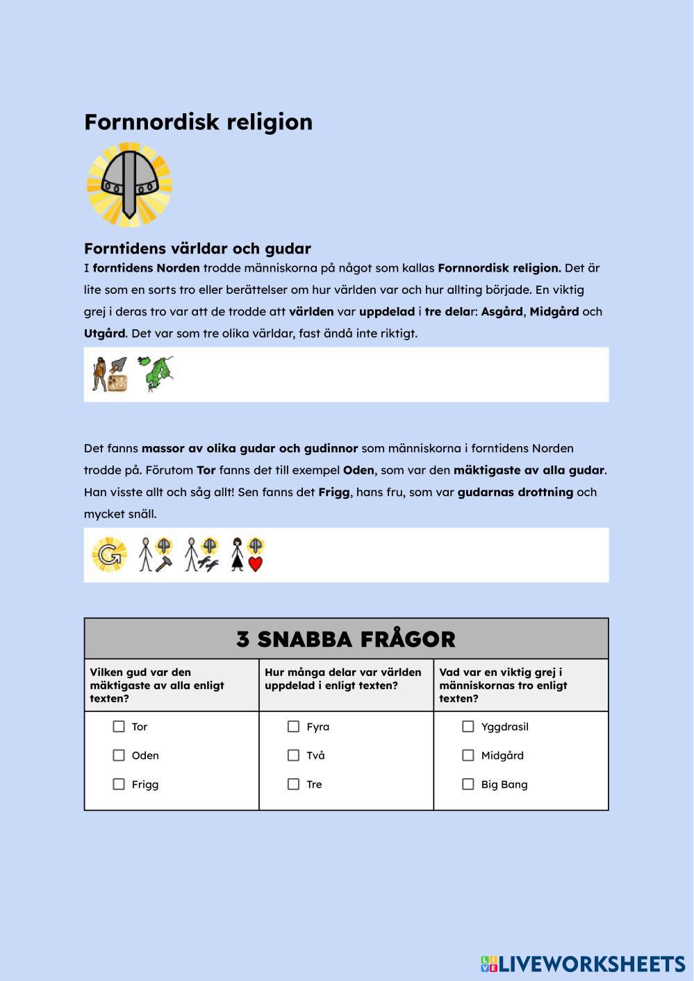 Created byEmil Olsén SO Grödor Age 10-15 level: 4-6 Swedish Author's Instructions My Google Classroom Courses × 0 classes selected (0 students total) Quick Access Select all classes (0 classes) All Classes Loading courses... Cancel Share Share to selected Course __COURSE_NAME__ __STUDENT_NAME__ (__STUDENT_EMAIL__) Olika religioner Download Worksheet Validation Check my answers Emails my answers to my teacher Full name Group/level School subject Teacher's email or key code Close Submit Validating worksheet... (12) Your answers have been sent to your teacher. Good luck! OK We encountered an error submitting your answers. Please try again. OK Advertisement | Go Ad Free Created byEmil Olsén SO Grödor Age 10-15 level: 4-6 Swedish Author's Instructions