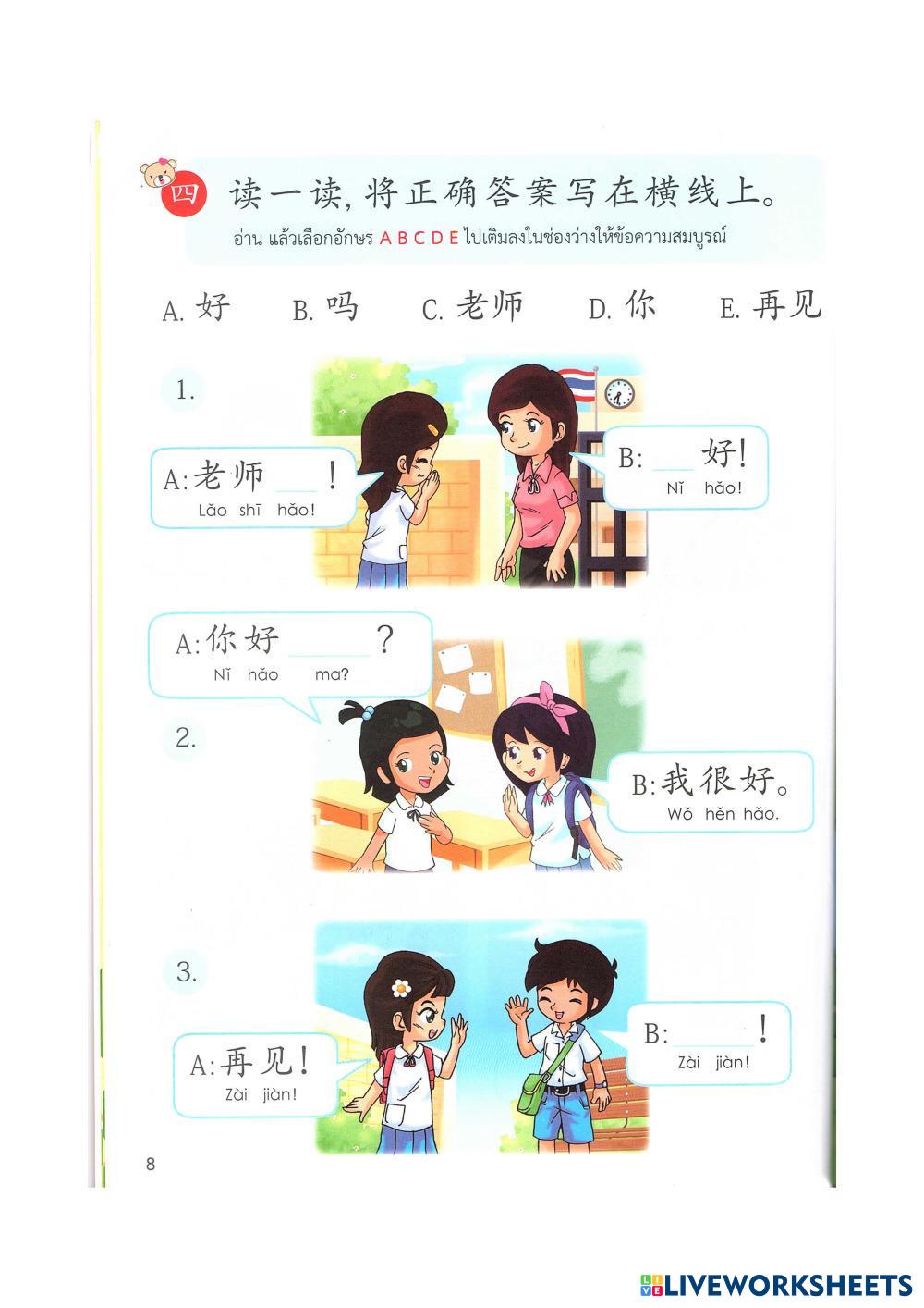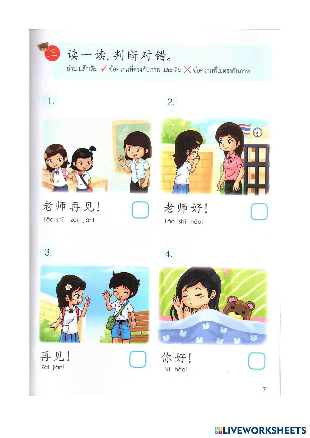 Created bypanadda nanthawat chinese Chinese Age 3+ level: 1 Thai Author's Instructions My Google Classroom Courses × 0 classes selected (0 students total) Quick Access Select all classes (0 classes) All Classes Loading courses... Cancel Share Share to selected Course __COURSE_NAME__ __STUDENT_NAME__ (__STUDENT_EMAIL__) แบบฝึกหัด บทที่ 1 สวัสดี Download Worksheet Validation Check my answers Emails my answers to my teacher Full name Group/level School subject Teacher's email or key code Close Submit Validating worksheet... (12) Your answers have been sent to your teacher. Good luck! OK We encountered an error submitting your answers. Please try again. OK Advertisement | Go Ad Free Created bypanadda nanthawat chinese Chinese Age 3+ level: 1 Thai Author's Instructions