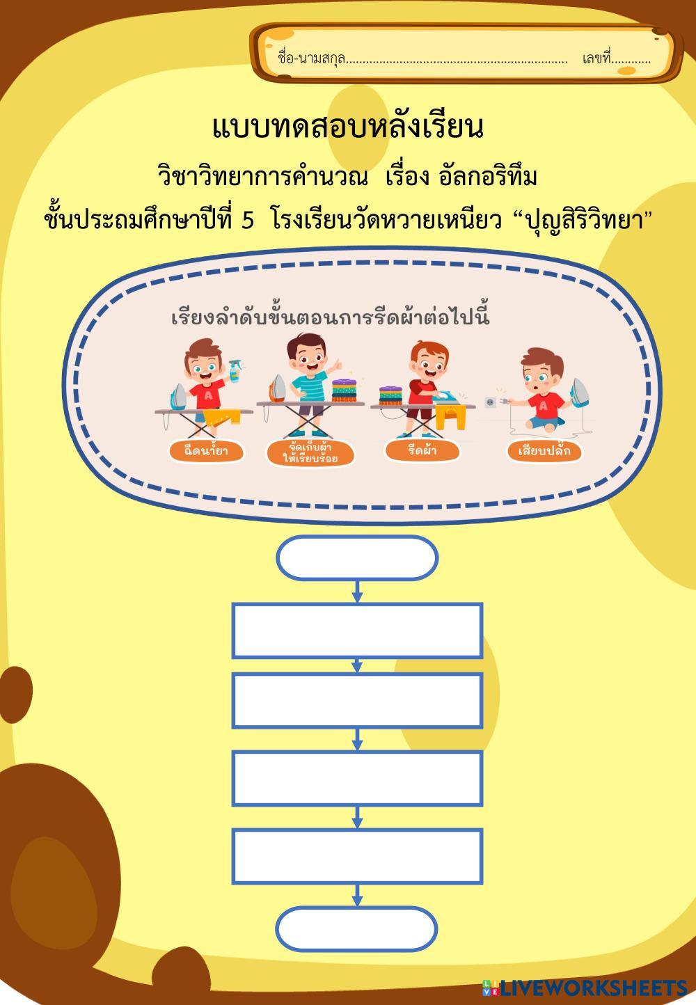 แบบทดสอบหลังเรียน วิชาวิทยาการคำนวณ เรื่อง อัลกอริทึม