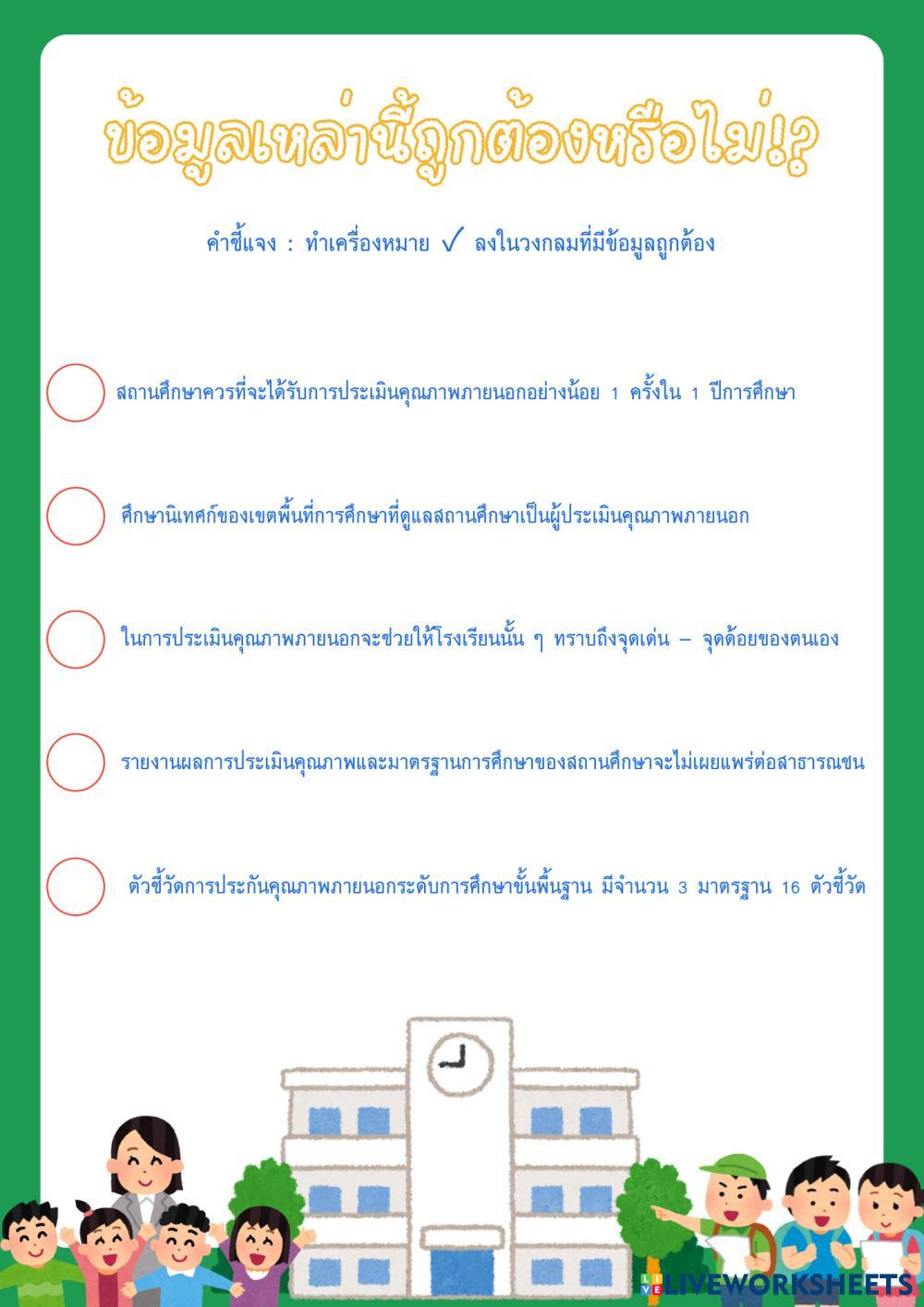 Created byNuttida Sangsard Education evaluation Age 18+ level: - Thai Author's Instructions My Google Classroom Courses × 0 classes selected (0 students total) Quick Access Select all classes (0 classes) All Classes Loading courses... Cancel Share Share to selected Course __COURSE_NAME__ __STUDENT_NAME__ (__STUDENT_EMAIL__) EQA QUIZ Download Worksheet Validation Check my answers Emails my answers to my teacher Full name Group/level School subject Teacher's email or key code Close Submit Validating worksheet... (12) Your answers have been sent to your teacher. Good luck! OK We encountered an error submitting your answers. Please try again. OK Advertisement | Go Ad Free Created byNuttida Sangsard Education evaluation Age 18+ level: - Thai Author's Instructions
