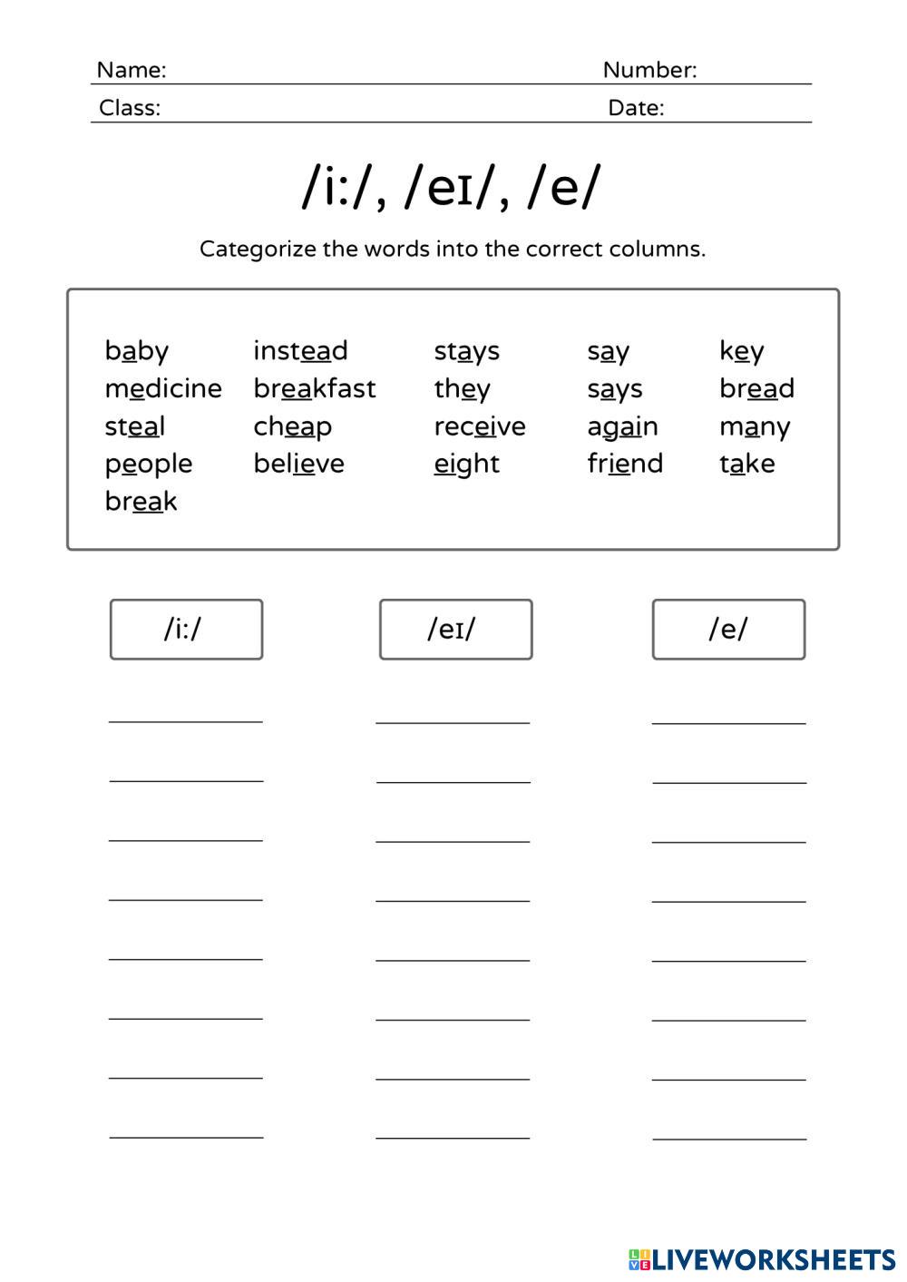 /i:/, /eɪ/, /e/