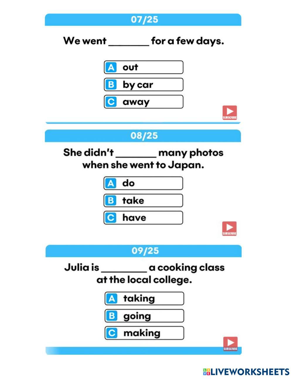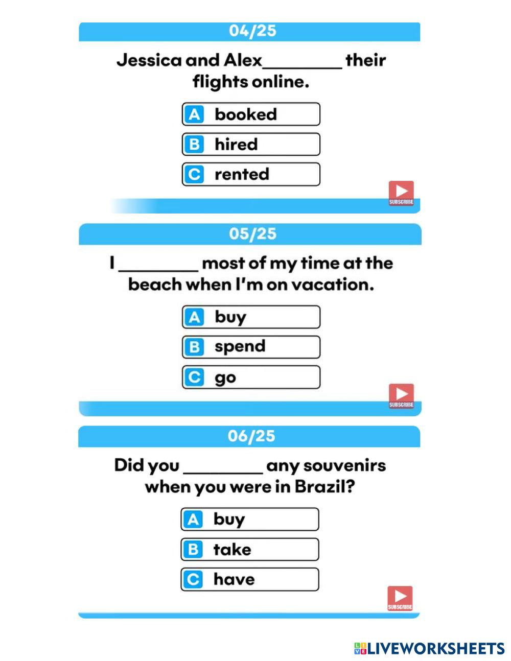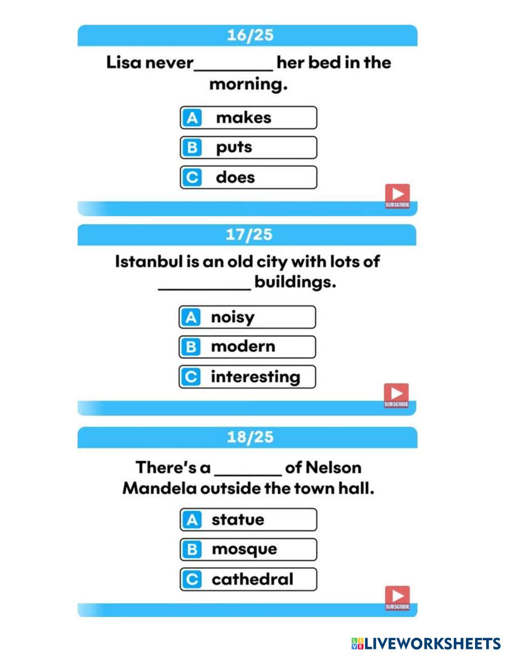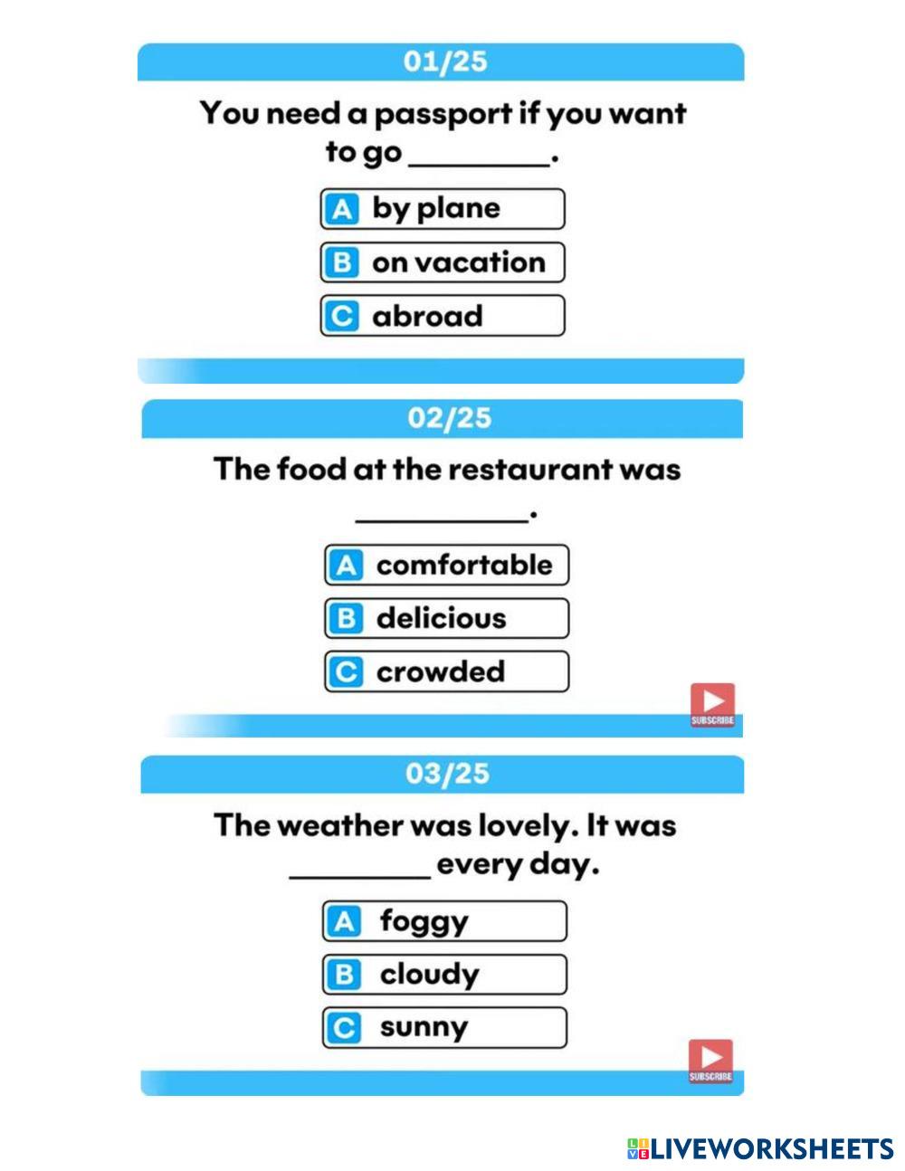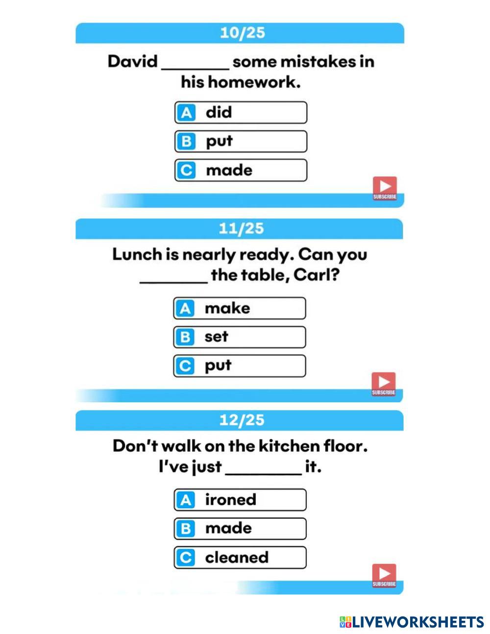 Created byAnothai Jetsadu English Vocabulary Age 14+ level: grade 10 Thai Author's Instructions - My Google Classroom Courses × 0 classes selected (0 students total) Quick Access Select all classes (0 classes) All Classes Loading courses... Cancel Share Share to selected Course __COURSE_NAME__ __STUDENT_NAME__ (__STUDENT_EMAIL__) English Vocabulary Quiz Download Worksheet Validation Check my answers Emails my answers to my teacher Full name Group/level School subject Teacher's email or key code Close Submit Validating worksheet... (12) Your answers have been sent to your teacher. Good luck! OK We encountered an error submitting your answers. Please try again. OK Advertisement | Go Ad Free Created byAnothai Jetsadu English Vocabulary Age 14+ level: grade 10 Thai Author's Instructions -