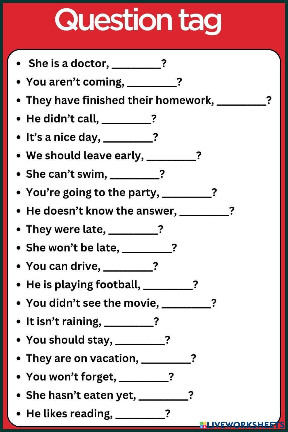 Created byPatcharida Srikhem English Grammar Age 15+ level: 10-12 Thai Author's Instructions My Google Classroom Courses × 0 classes selected (0 students total) Quick Access Select all classes (0 classes) All Classes Loading courses... Cancel Share Share to selected Course __COURSE_NAME__ __STUDENT_NAME__ (__STUDENT_EMAIL__) Question tag Download Worksheet Validation Check my answers Emails my answers to my teacher Full name Group/level School subject Teacher's email or key code Close Submit Validating worksheet... (12) Your answers have been sent to your teacher. Good luck! OK We encountered an error submitting your answers. Please try again. OK Advertisement | Go Ad Free Created byPatcharida Srikhem English Grammar Age 15+ level: 10-12 Thai Author's Instructions