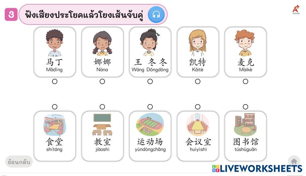 Created byThamonwan Suttikaroon ESL Chinese, Simplified A1 Listening Thai Author's Instructions 听力 My Google Classroom Courses × 0 classes selected (0 students total) Quick Access Select all classes (0 classes) All Classes Loading courses... Cancel Share Share to selected Course __COURSE_NAME__ __STUDENT_NAME__ (__STUDENT_EMAIL__) ใบงานที่ 4.9 #ASK3 Download Worksheet Validation Check my answers Emails my answers to my teacher Full name Group/level School subject Teacher's email or key code Close Submit Validating worksheet... (12) Your answers have been sent to your teacher. Good luck! OK We encountered an error submitting your answers. Please try again. OK Advertisement | Go Ad Free Created byThamonwan Suttikaroon ESL Chinese, Simplified A1 Listening Thai Author's Instructions 听力 Explore Worksheets ใบงานที่ 5.9 #ASK3 ESL A1 ใบงานที่ 5.9 #ASK3 Listening - ESL 听力 ใบงานที่ 1.9 #ASK3 ESL A1 ใบงานที่ 1.9 #ASK3 Listening - ESL 听力 Konsonan Part 1 ESL A1 Konsonan Part 1 Listening - ESL Mendengarkan audio dan tentukan mana yang benar HSK1 Bài 1 - Phần nghe ESL A1 HSK1 Bài 1 - Phần nghe Listening - ESL Nghe và chọn đáp án đúng