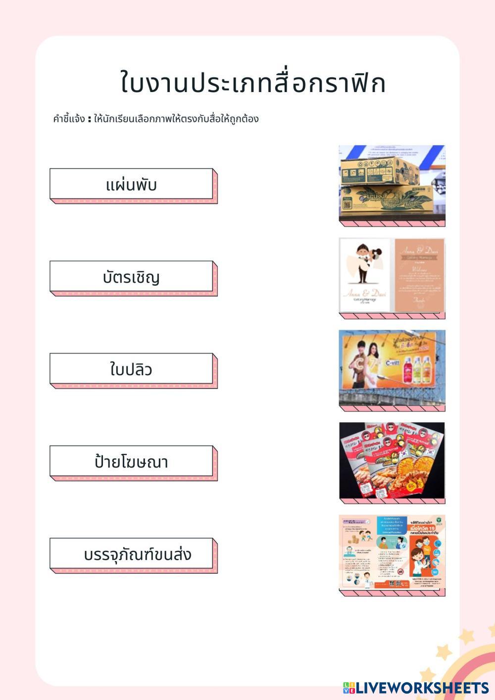 Created byTeacherSupattra graphic media Age 12+ level: 1 Thai Author's Instructions My Google Classroom Courses × 0 classes selected (0 students total) Quick Access Select all classes (0 classes) All Classes Loading courses... Cancel Share Share to selected Course __COURSE_NAME__ __STUDENT_NAME__ (__STUDENT_EMAIL__) TDS2 Download Worksheet Validation Check my answers Emails my answers to my teacher Full name Group/level School subject Teacher's email or key code Close Submit Validating worksheet... (12) Your answers have been sent to your teacher. Good luck! OK We encountered an error submitting your answers. Please try again. OK Advertisement | Go Ad Free Created byTeacherSupattra graphic media Age 12+ level: 1 Thai Author's Instructions